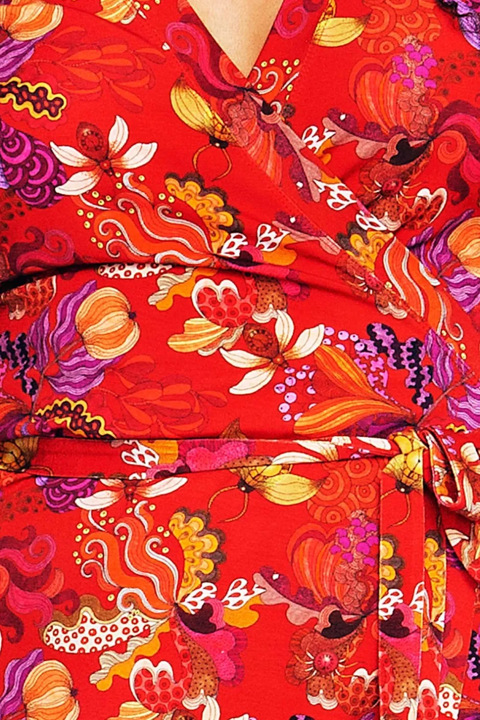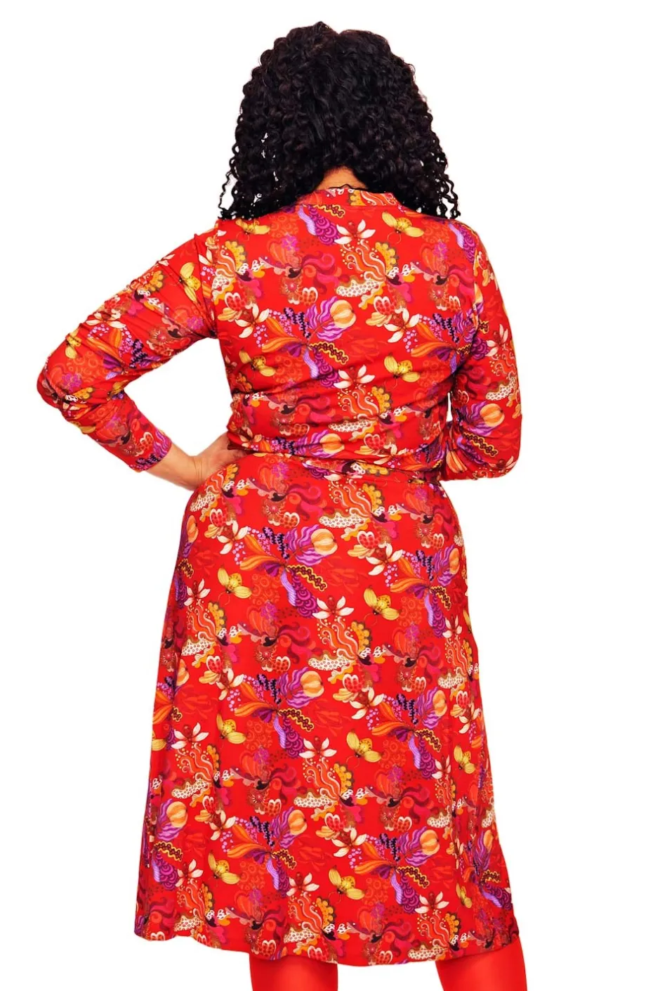 Nyhet! Anna-Klara är höstversionen av vår smickrande omlottklänning Josefine. Klänningen har lång ärm, knytband i midjan och dekorativa rynkade veck på framsidan av axeln. Tyget är i viskostrikå med stretch i som ger klänningen ett fint fall.