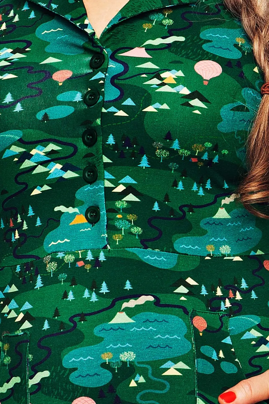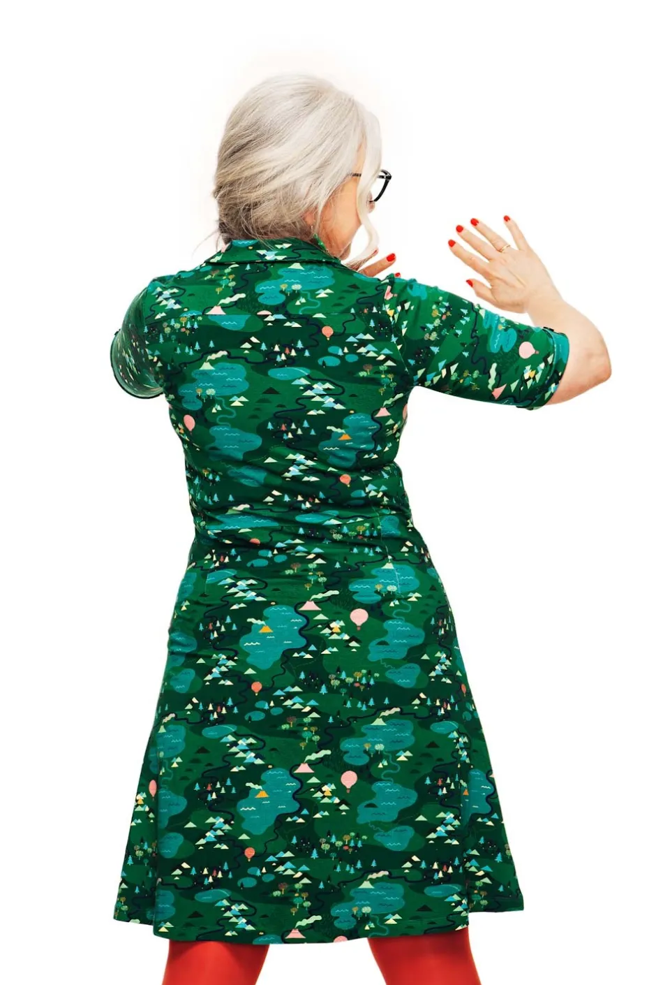 Tyget heter Äventyr och är ritat av Vera Kindgren. Ett lekfullt mönster med borgar och dalar insjöar, skogsdungar och rykande vulkaner. På en grön bottenfärg utspelar sig äventyret i detaljer i rosa, orange, turkost och ljusgrönt.