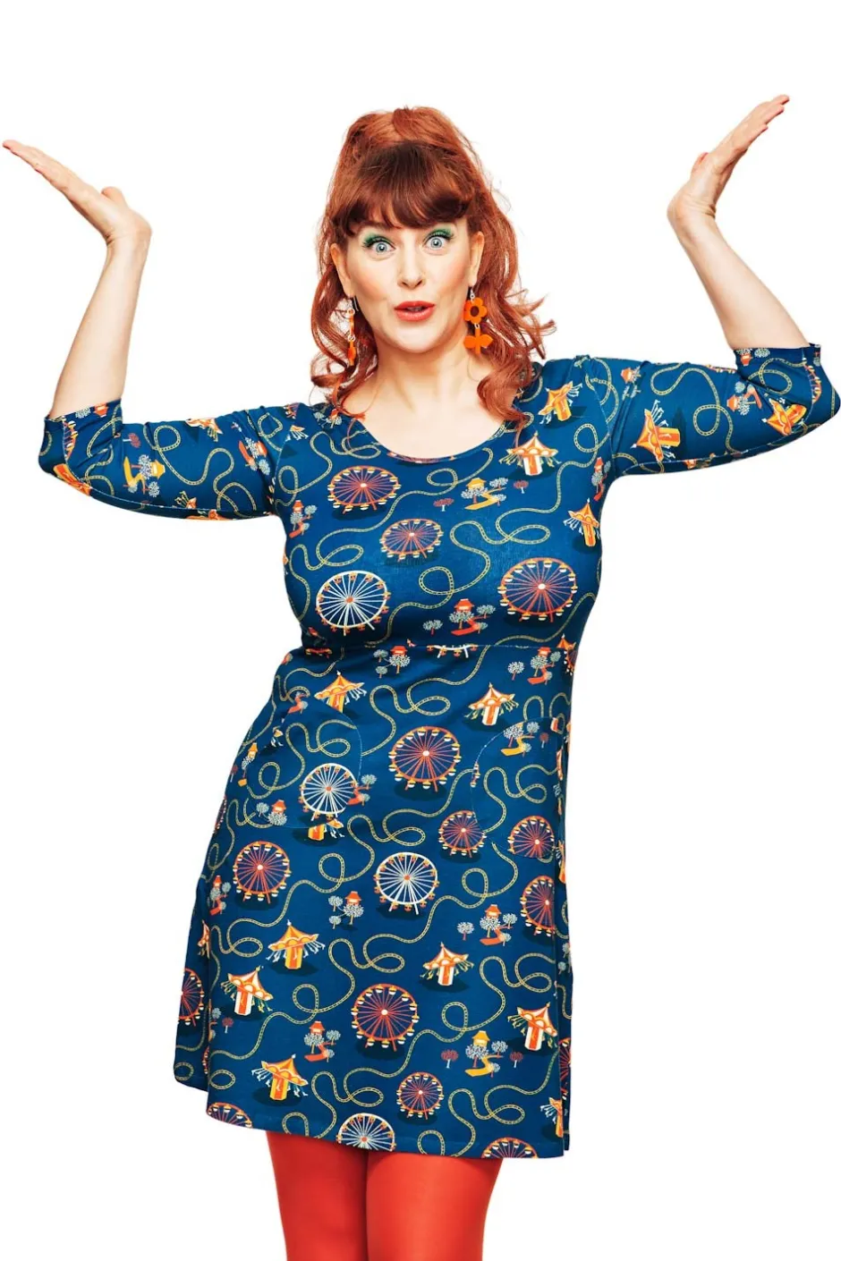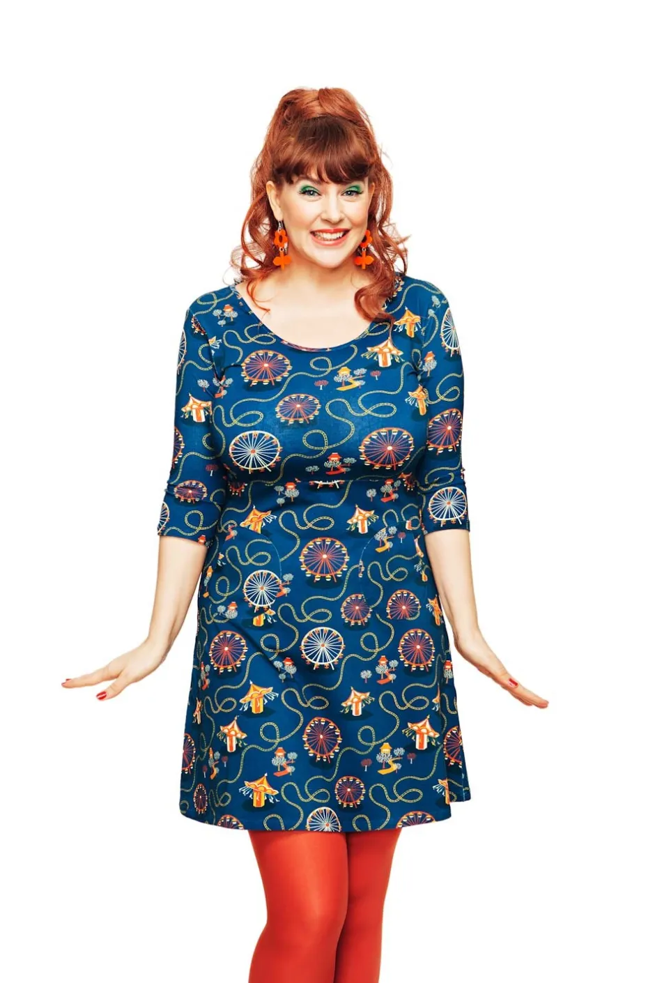 Ester är en klänning i mjuk bomullstrikå från vår egen Cissi och Selma-kollektion. En klänning med skärning i midjan och lätt utställd kjol. Klänningen har trekvartsärm och rundade fickor fram. Den perfekta vardagsklänningen!