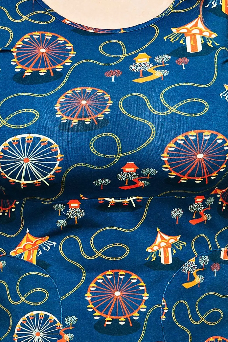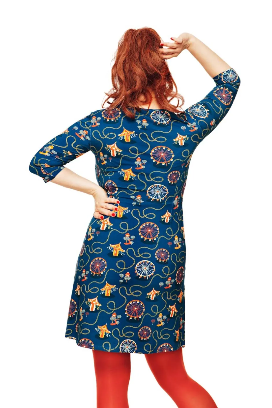 Tyget heter Tivoli Petrol och är ritat av Vera Kindgren. Ett glatt mönster med snurrande karuseller och böljande berg-och-dalbanor. Färgerna går i petroleum, orange och gult.
