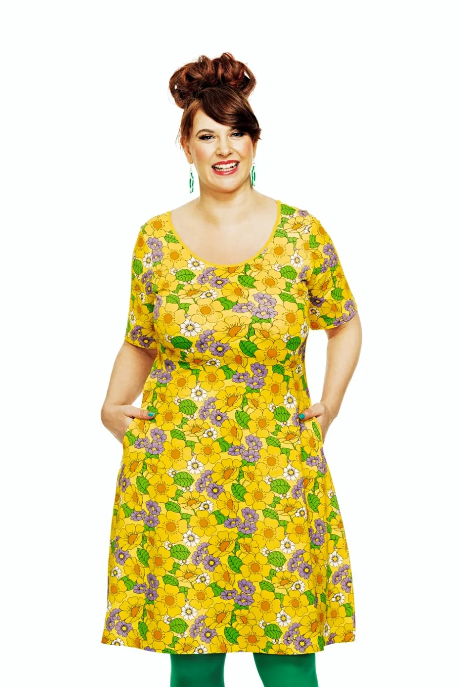Magda är en trikåklänning utan skärningar med lite vidd i kjolen och perfekt ärmlängd. Klänningen har en elegant halsringning och fickor i sidorna med kontrasterande kantband.