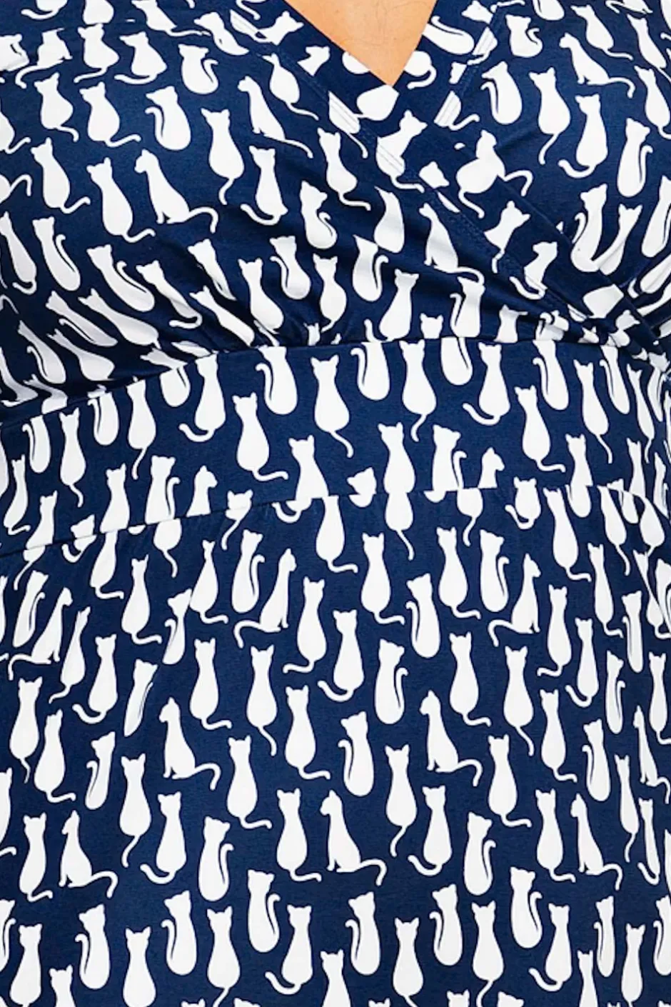 Tyget heter Katter och har en mörkblå botten med vita katter.