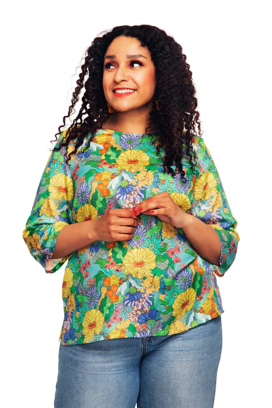 Toppen Elsie är en A-linjeformad topp i mjuk vävd Tencel med 3/4 ärmar. Modellen är nättare upptill och vidare nertill. Toppen har sprund i sidorna vilket ger den en fin passform. Tyget Tencel har lite av en sidenkänsla i materialet och ger därför toppen lite av en lyxigare känsla.