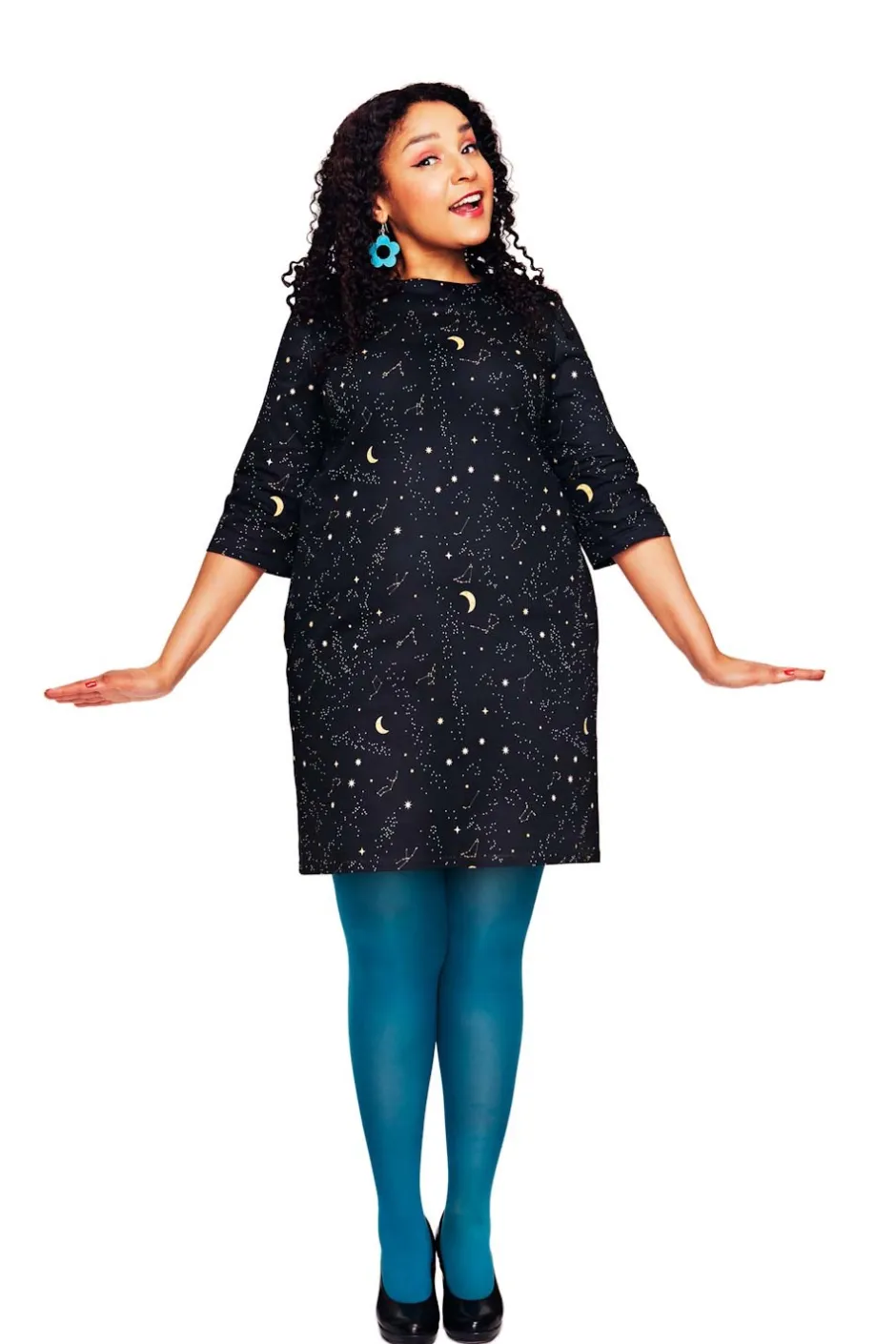 Olivia är en något kortare A-formad klänning inspirerad av 60-talet. Klänningen är nättare upptill och har lösare passform nertill. Den har en något vidare trekvartsärm, dolda fickor i sidorna samt dragkedja bak i ryggen. Klänningen är fodrad för att inte haka upp sig på dina strumpbyxor. Olivia är en perfekt modell att variera, bär den med strumpbyxor eller mer som en tunika till ett par byxor. Passar lika bra till vardags som till fest.