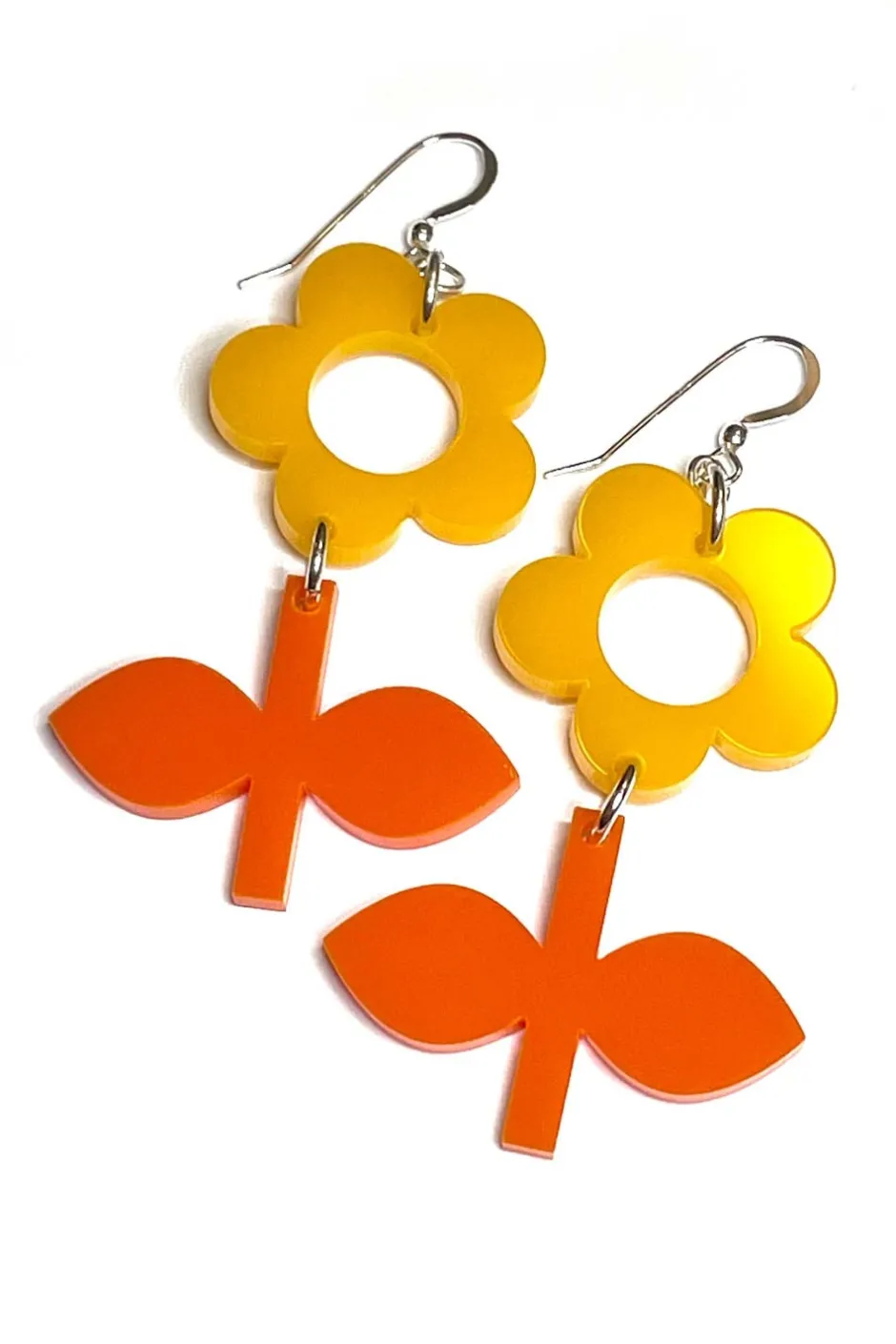 Örhänget Blom finns i många olika färger och är tillverkat i sterlingsilver och laserskuren akryl. Blom är våran mindre modell av blomsterörhänge. I smyckesserien finns också Flora som är en större variant av Blom sedan finns även i serien Frö och Solo som endast är en blomma, utan stjälk.