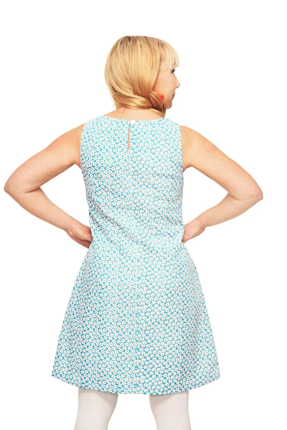 Rut är en av Cissi och Selmas första klänningsmodeller, en riktig klassiker inspirerad av 60-talet sydd i ett vävt bomullstyg med lite stretch i! Modellen är A-formad, nättare upptill och vidare nertill. Klänningen har ingen dragkedja utan är istället designad med sprund i nacken med knapp. De dolda fickorna i sidan har en dekorativ stickning som löper längs fickans utsida.