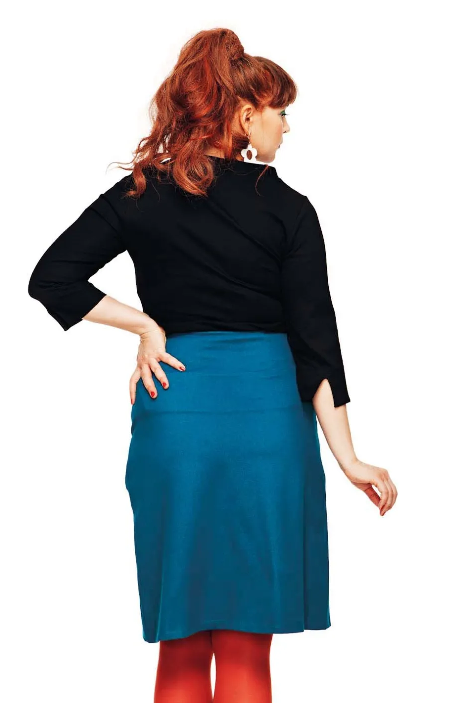 Majken är en bekväm kjol i en stadig bomullstrikå med figurnära passform. Kjolen har fickor och bred mudd i midjan. Längden är till strax ovanför knät.
