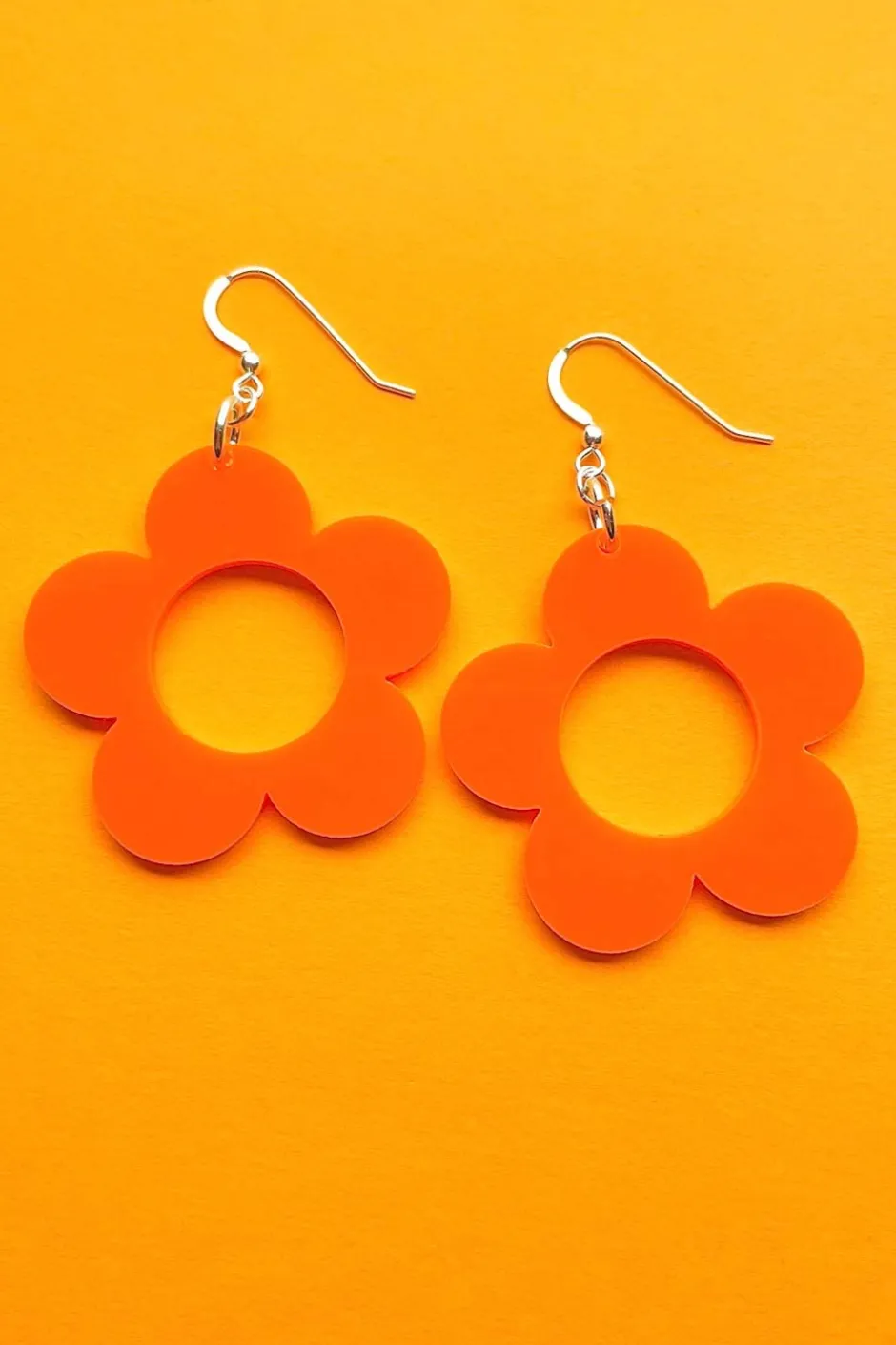 Varje färgkombination görs i begränsad upplaga och formges och monteras av oss i Stockholm. Örhänget Solo finns i olika färger och är tillverkat i sterlingsilver och laserskuren akryl. I smyckesserien finns även örhängena Frö, Flora och Blom.