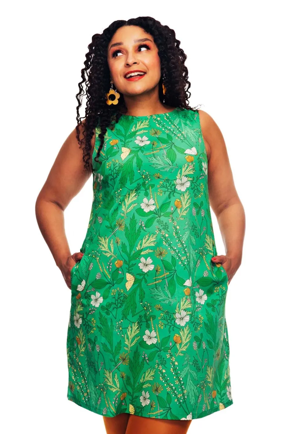 Rut är en av Cissi och Selmas första klänningsmodeller, en riktig klassiker inspirerad av 60-talet! Modellen är A-formad, nättare upptill och vidare nertill. Klänningen har ingen dragkedja utan är istället designad med sprund i nacken med knapp. De dolda fickorna i sidan har en dekorativ stickning som löper längs fickans utsida.