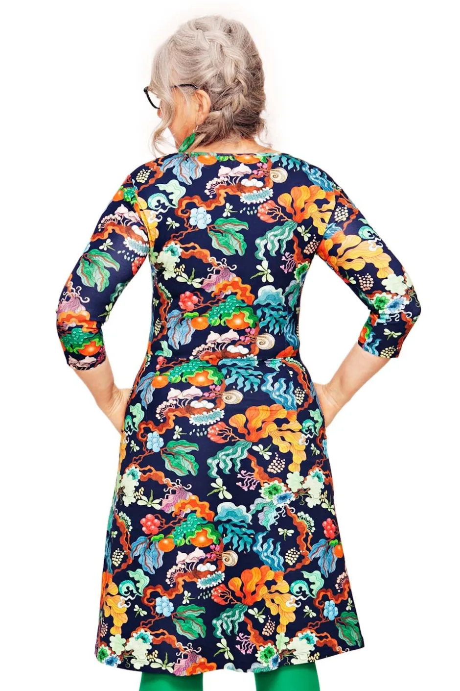 XS: Byst 82, Midja 72, Stuss 94, Längd (från axel) 94