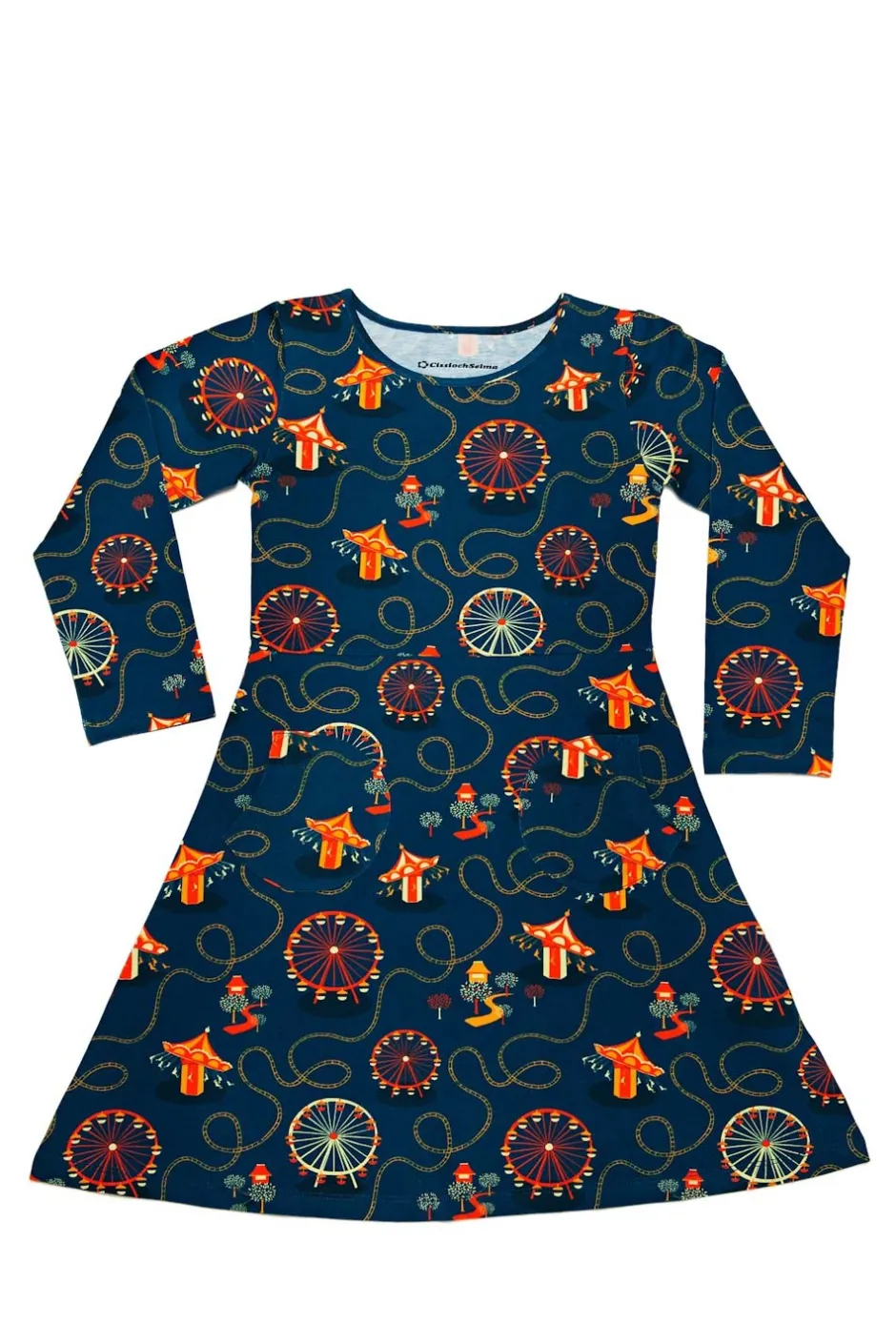 Ester MINI är en bekväm klänning i ekologisk bomullstrikå med hellång ärm. Klänningen är skuren i midjan, lite utställd kjoldel och har rundade fickor fram.