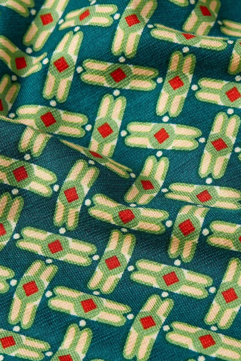 Färg: Petrol/grön botten, mönster i beige, röd, grön.