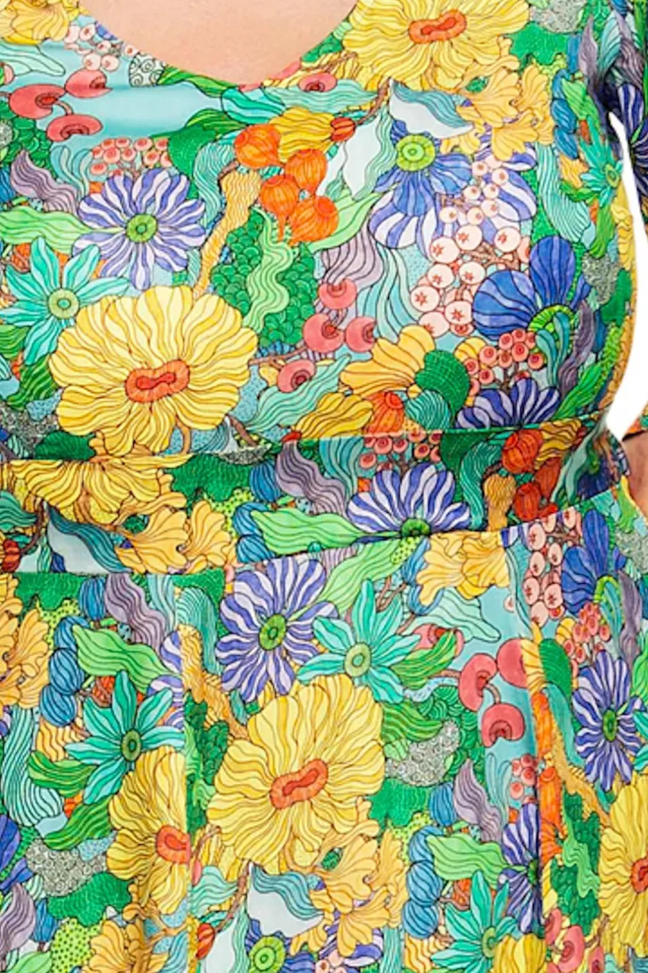 Tyget heter Illusion färgglad och skiftar i många färger bl.a blå, rosa, grön, gul, lila och turkos. Mönstret är designat av Framiadesign.