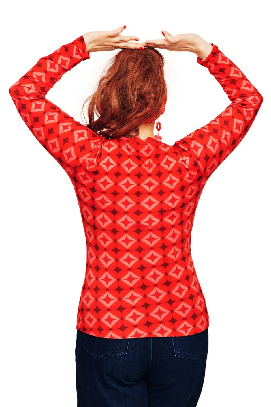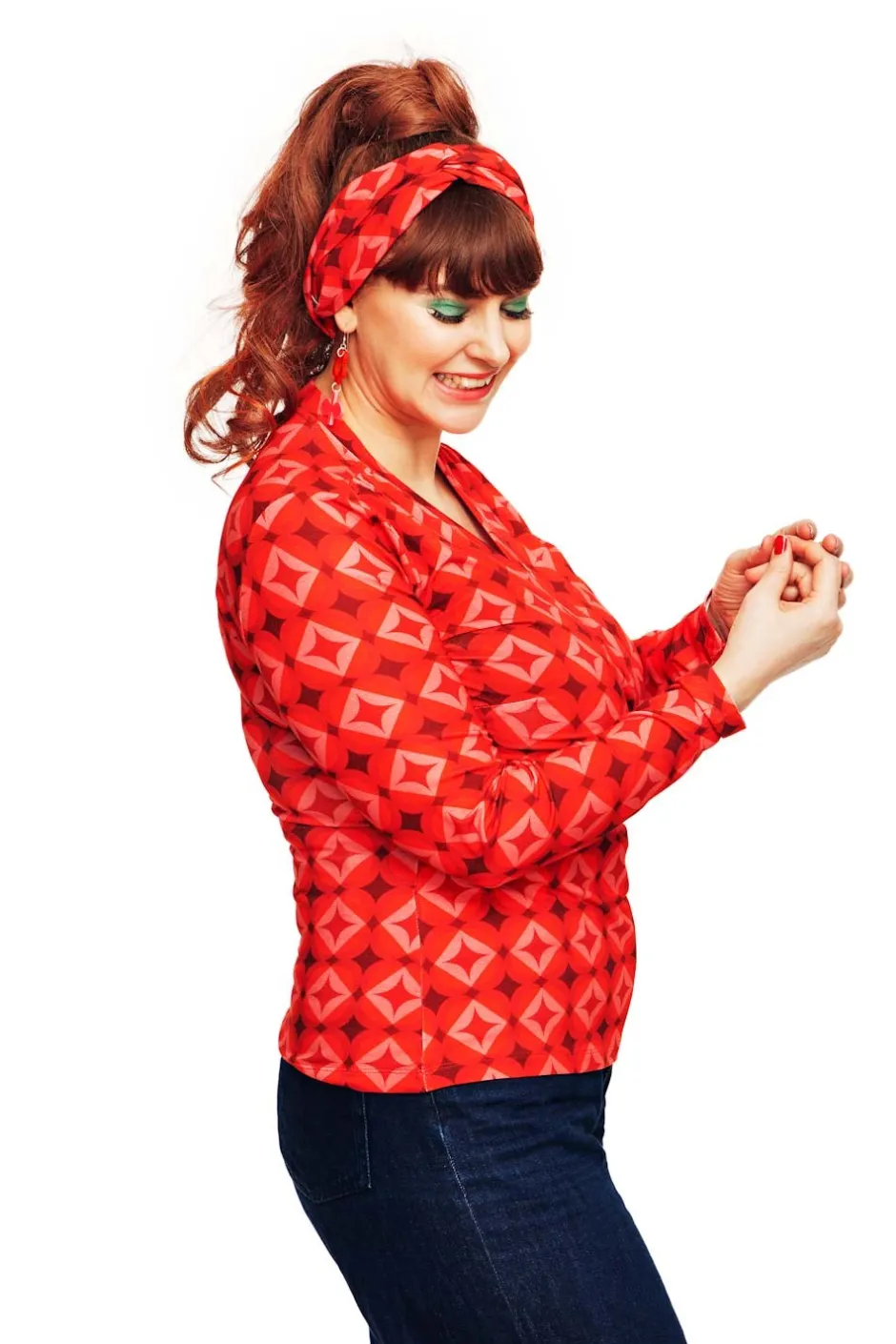 Toppen Susanne är höstversionen av vår populära topp Jessica. Toppen är gjord i mjuk och stretchig viskostrikå vilket ger ett fint fall och bra passform. Susanne har lång ärm med rynkade veck på axeln framtill. Passar bra till både kjol och byxor.