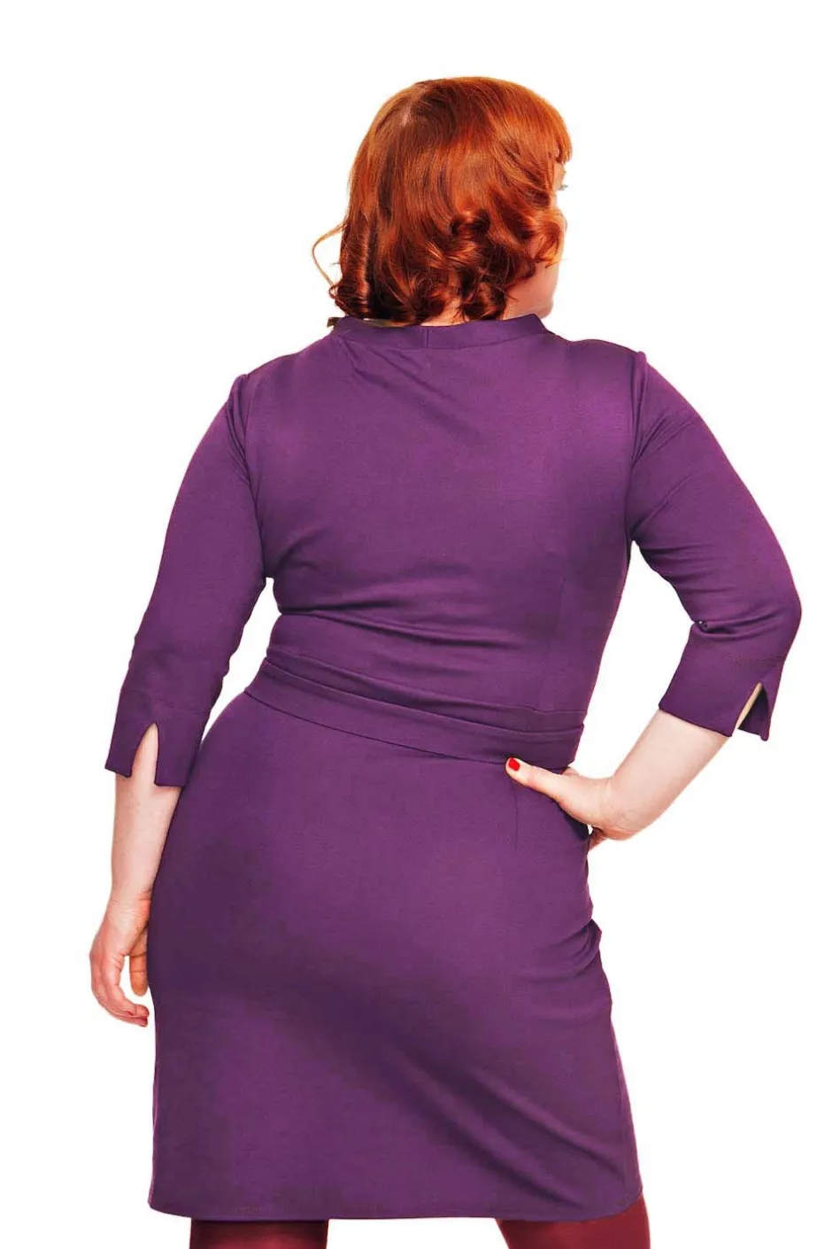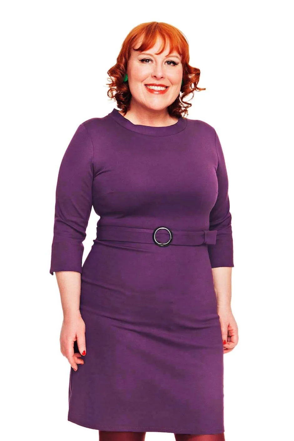 Agneta är en dressad klänning av rakare modell med en liten skorstenskrage, 3/4 ärm med sprund och ett dekorativt skärp. Klänningen har insnitt i ryggen och en kjol som går rakt ner. Tyget är mjukt och följsamt.
