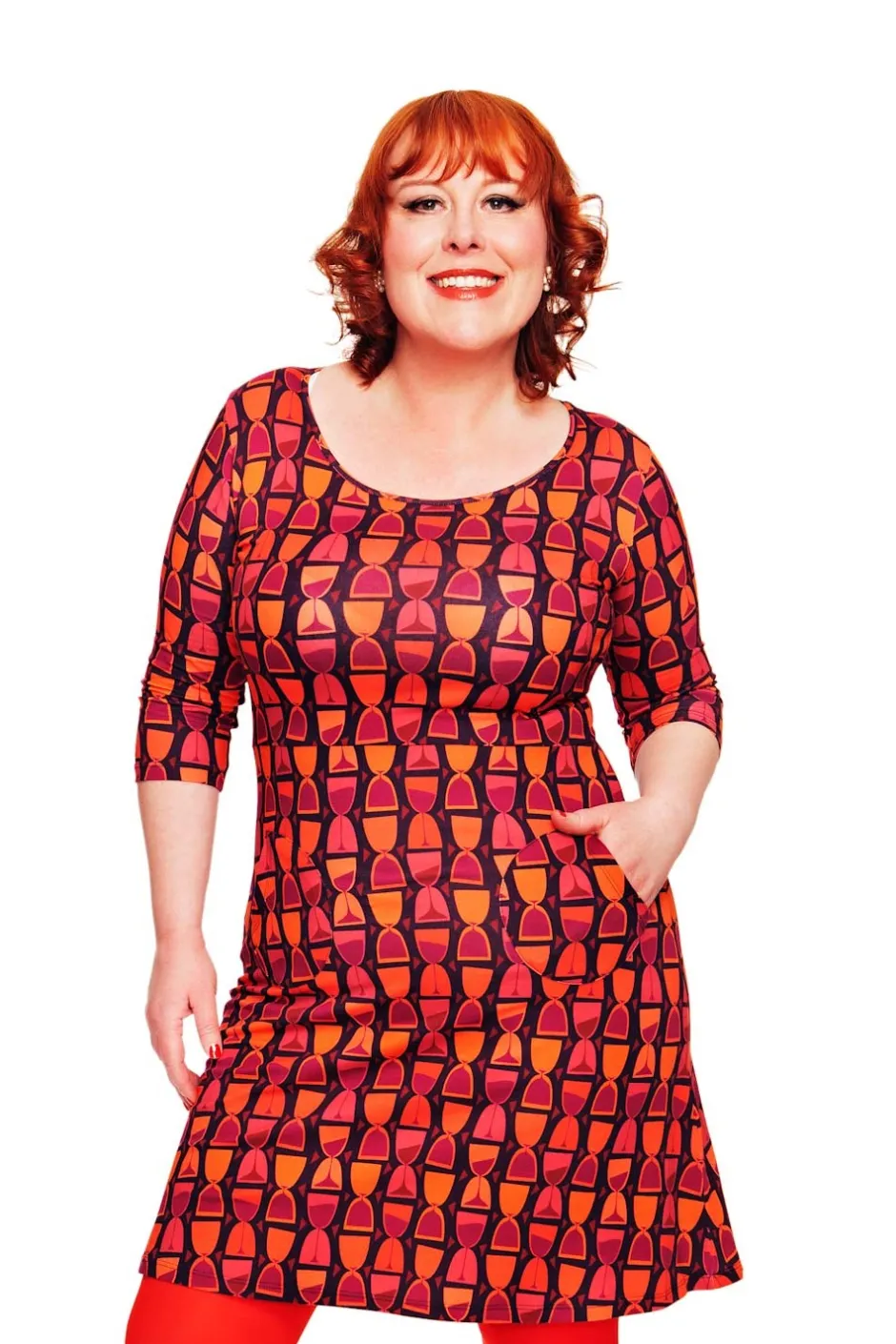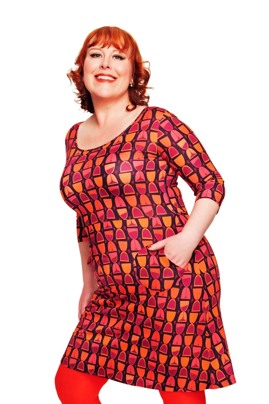 Ester är en klänning i bomullstrikå från vår egen Cissi och Selma-kollektion. En klänning med skärning i midjan och lätt utställd kjol. Klänningen har trekvartsärm och rundade fickor fram. Den perfekta vardagsklänningen!