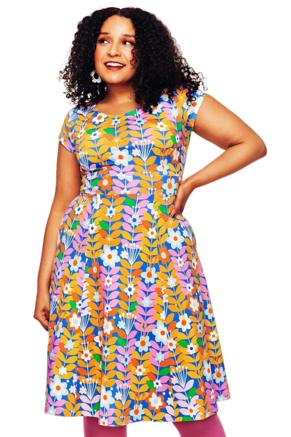 Hilda är en somrig klänningsmodell i mjuk ekologisk bomullstrikå med kort ärm, skärning under bysten och knytband i midjan. Kjolen är tårtbitsskuren och har en fin vidd. Bekväm festklänning eller att perfekt att bo i hela sommaren!