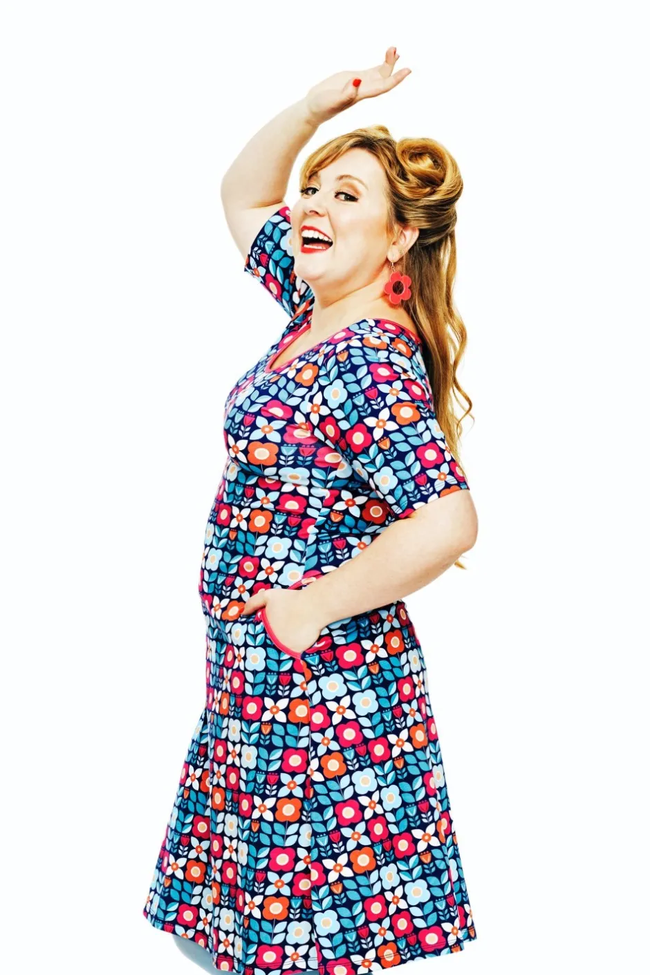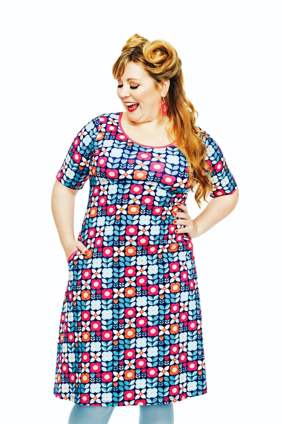 Magda är en trikåklänning utan skärningar med lite vidd i kjolen och perfekt ärmlängd. Klänningen har en elegant halsringning och fickor i sidorna med kontrasterande kantband.