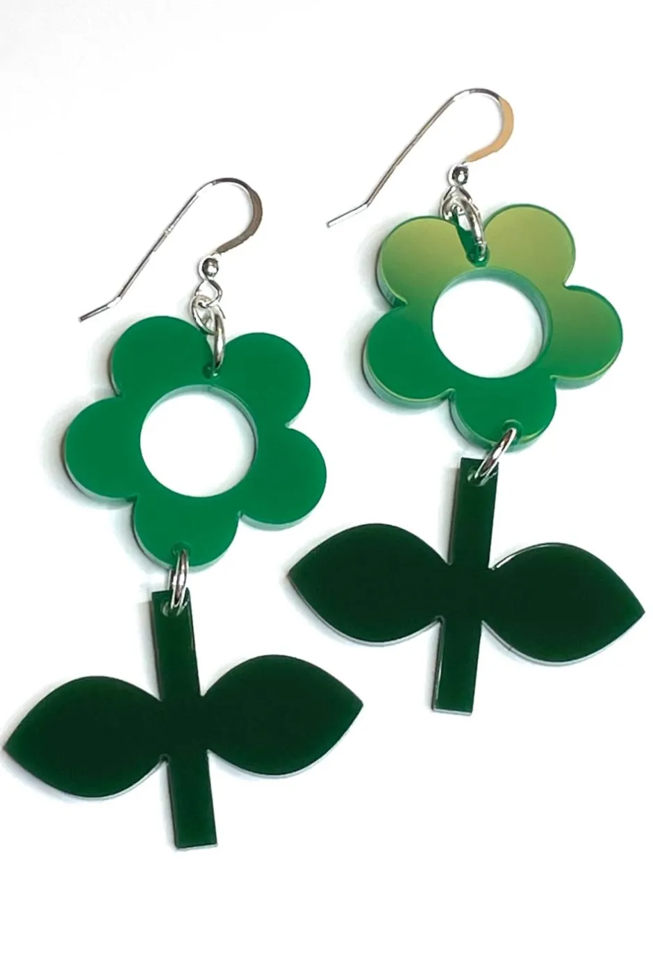 Örhänget Blom finns i många olika färger och är tillverkat i sterlingsilver och laserskuren akryl. Blom är våran mindre modell av blomsterörhänge. I smyckesserien finns också Flora som är en större variant av Blom sedan finns även i serien Frö och Solo som endast är en blomma, utan stjälk.