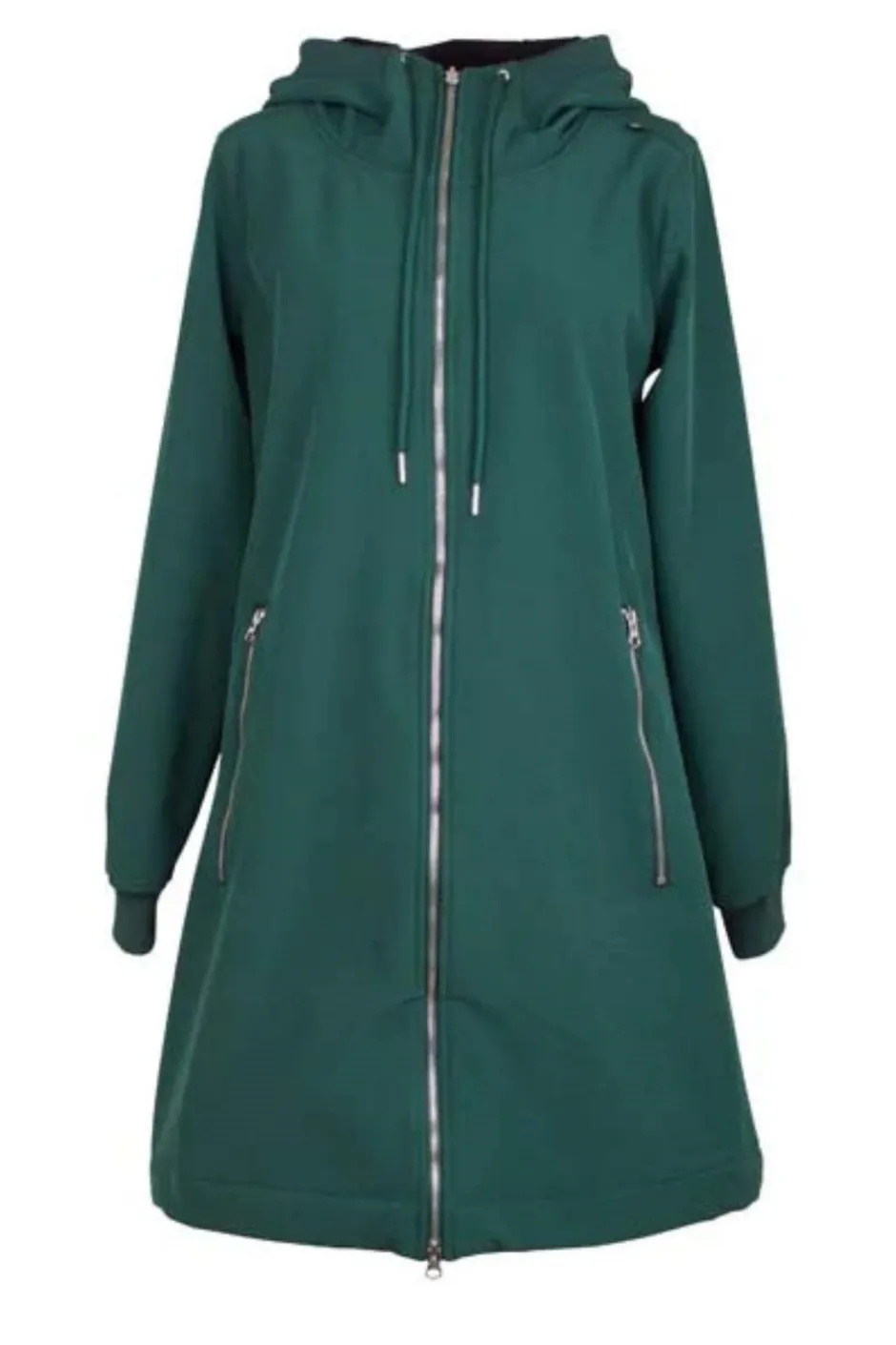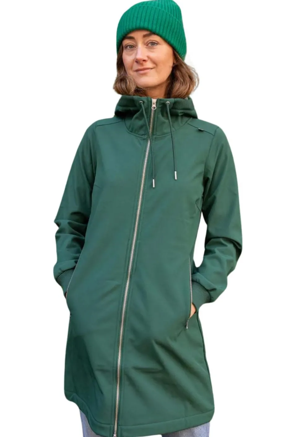 En snygg softshelljacka från danska Danefae i färgen ”Dark Khaki”, grön. Jackan har ett praktiskt och skönt yttertyg i stretch och ett värmande foder i fleece. Yttertyget är vind- och vattentätt (3.000 mm). Stängs med dragkedja, som går att knäppa från båda håll, perfekt för dig som cyklar. Två stora snedställda fickor fram, som stängs med dragkedja. Resår i såväl luvan som i ärmslut, vilket håller blåst och väta ute. Resår i ryggen, som förstärker det feminina snittet på jackan.