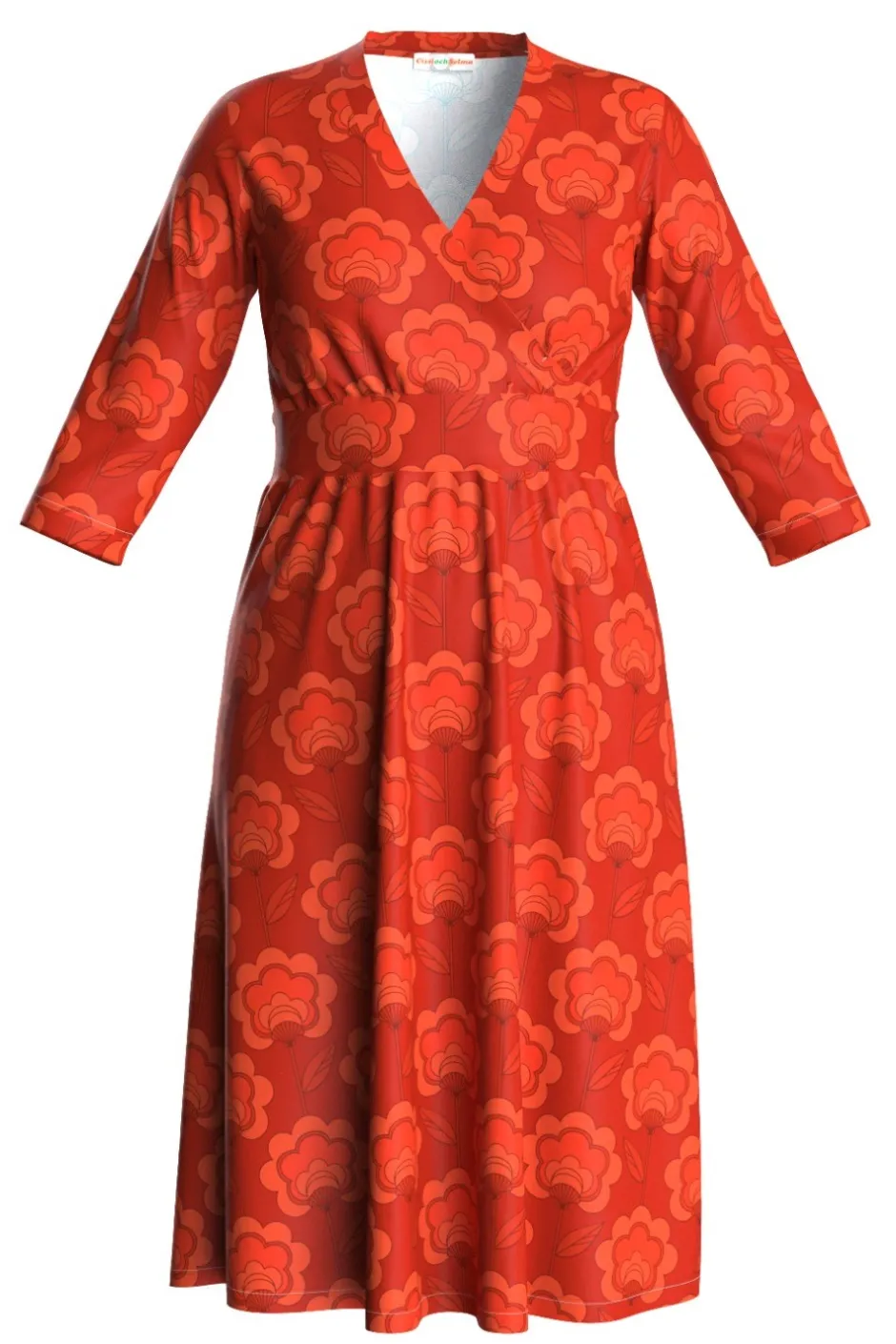 Vera är en välarbetad klänningsmodell i mjuk och skön ekologisk bomullstrikå med fina detaljer. Den har V-formad omlottringning, ett midjeparti och lätt rynkad kjol med fickor i sidorna. Längden är till knät och ärmen går till armbågen.