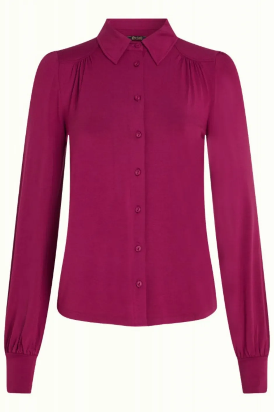 Skjortblus från holländska märket King Louie. Blus med luftig ärm med en liten puff. Blusen är sydd i skön och stretchig viskostrikå. Skjortan har en nätt krage och knäppning hela vägen framtill.