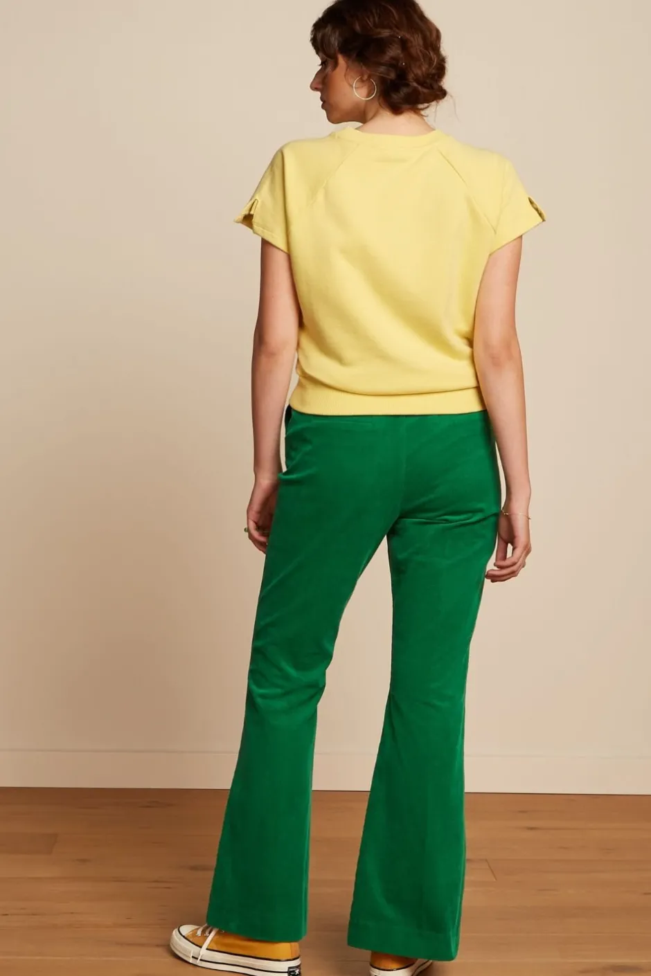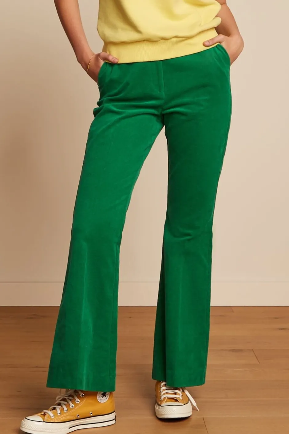 Manchesterbyxa i en knallig grön färg från holländska märket King Louie. Manchesterbyxan har en hög midja, smalare 70-tals siluett med smalare passform över lår med utställda ben. Bekväm och mjuk komfortstrech. Dragkedja och knappstängning fram. Snedställda fickor i sidan. Weltficka på baksidan. Mjuk mini manchester.