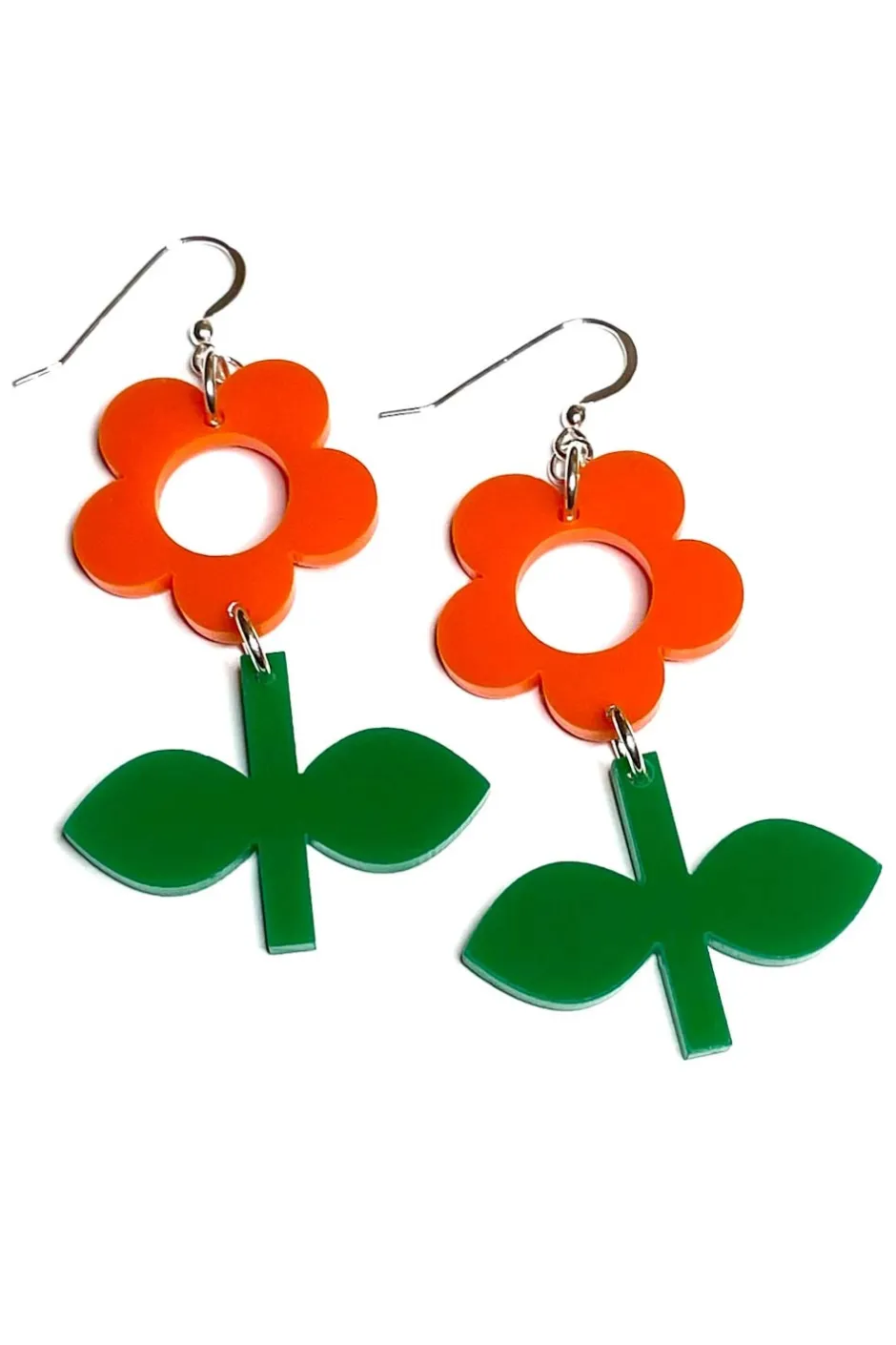 Örhänget Blom finns i många olika färger och är tillverkat i sterlingsilver och laserskuren akryl. Blom är våran mindre modell av blomsterörhänge. I smyckesserien finns också Flora som är en större variant av Blom sedan finns även i serien Frö och Solo som endast är en blomma, utan stjälk.