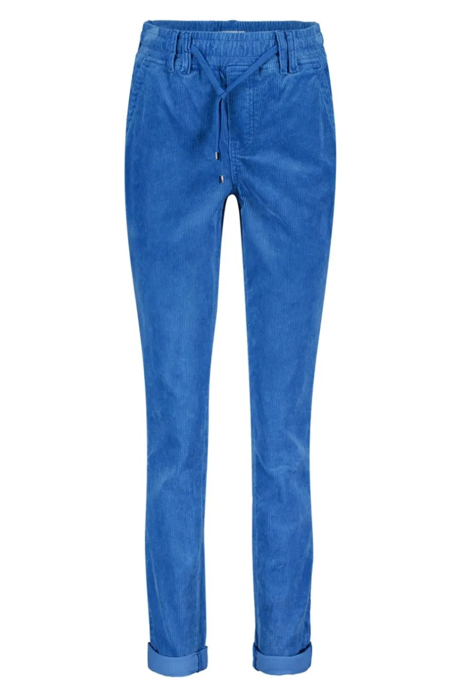 Manchester byxor med lite stretch i från märket Red Button. En skön byxa i lösare passform med dragsko i midjan och falsk knäppning fram för att ge ett skräddat utseende. Ett uppvik är lagt längst ned på byxan för att ger en avslappnad look, men går att räta ut. Modellen har fickor i sidan och bak.