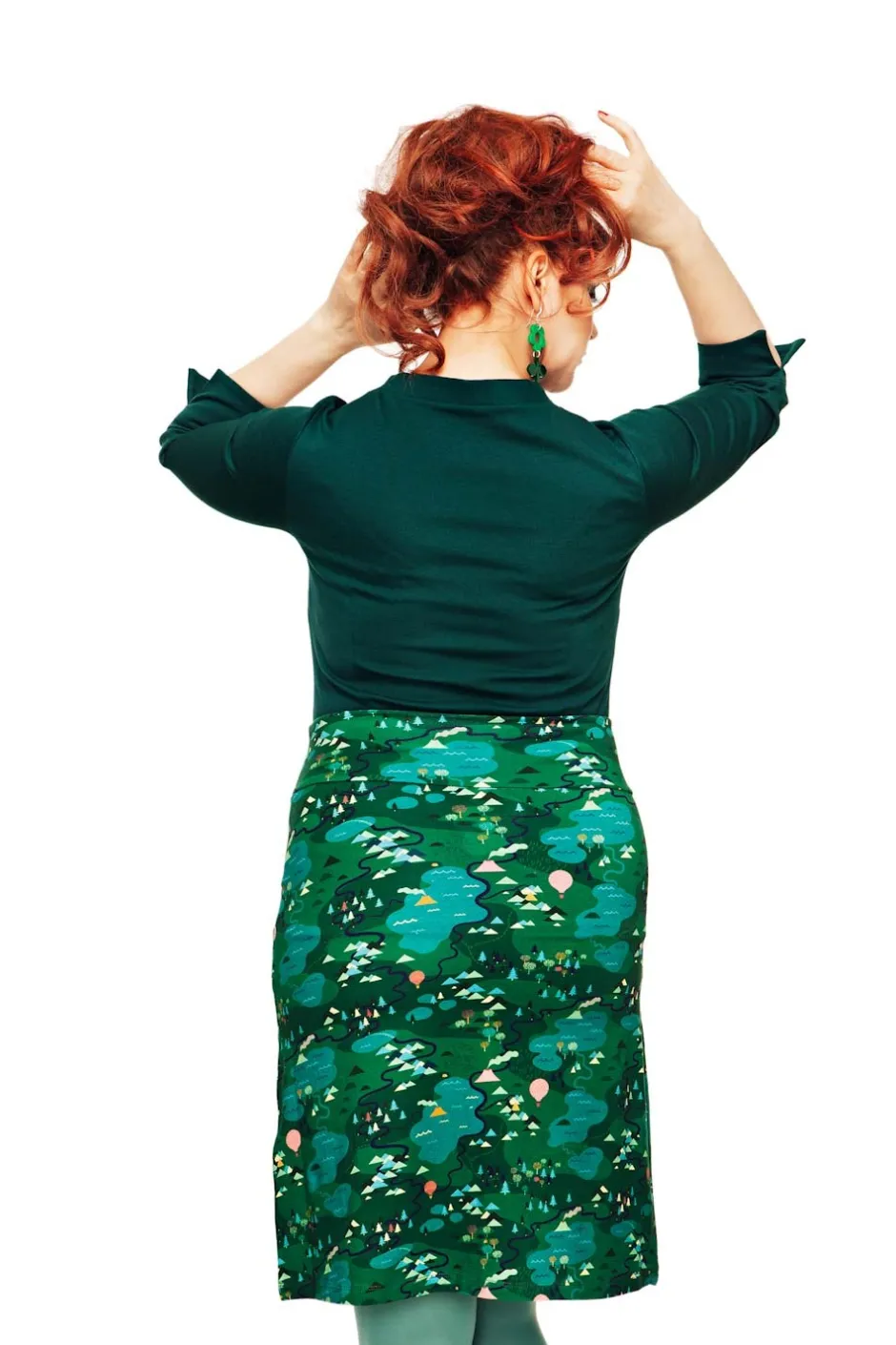 Tyget heter Äventyr och är ritat av Vera Kindgren. Ett lekfullt mönster med borgar och dalar insjöar, skogsdungar och rykande vulkaner. På en grön bottenfärg utspelar sig äventyret i detaljer i rosa, orange, turkost och ljusgrönt.
