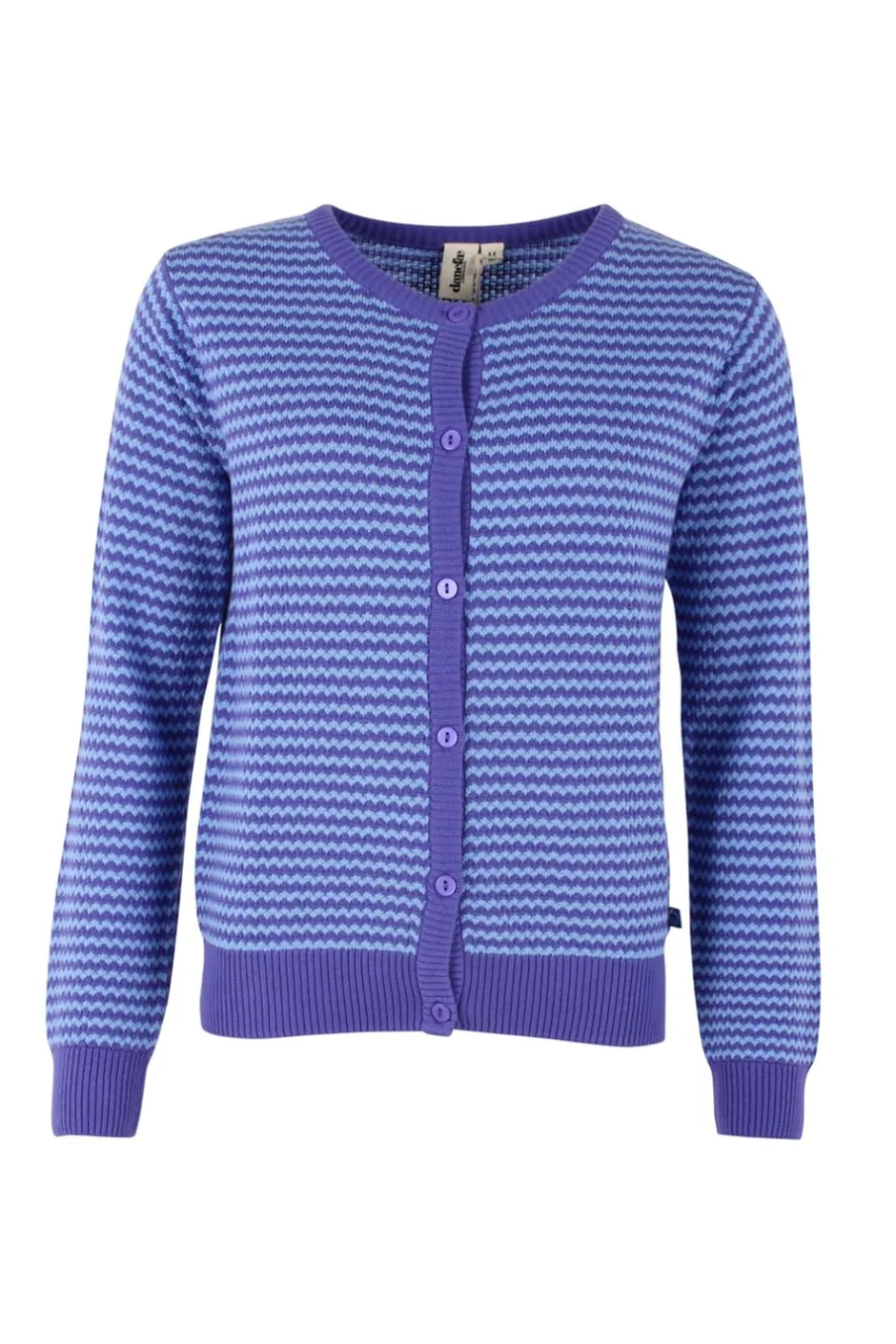 Kofta i enkel och klassisk design från danska märket Danefea. Saga Pearl Cardigan är en finstickad kofta i en så kallad pärlstickning i bomullskvalitet med ett randigt/vågigt mönster.
