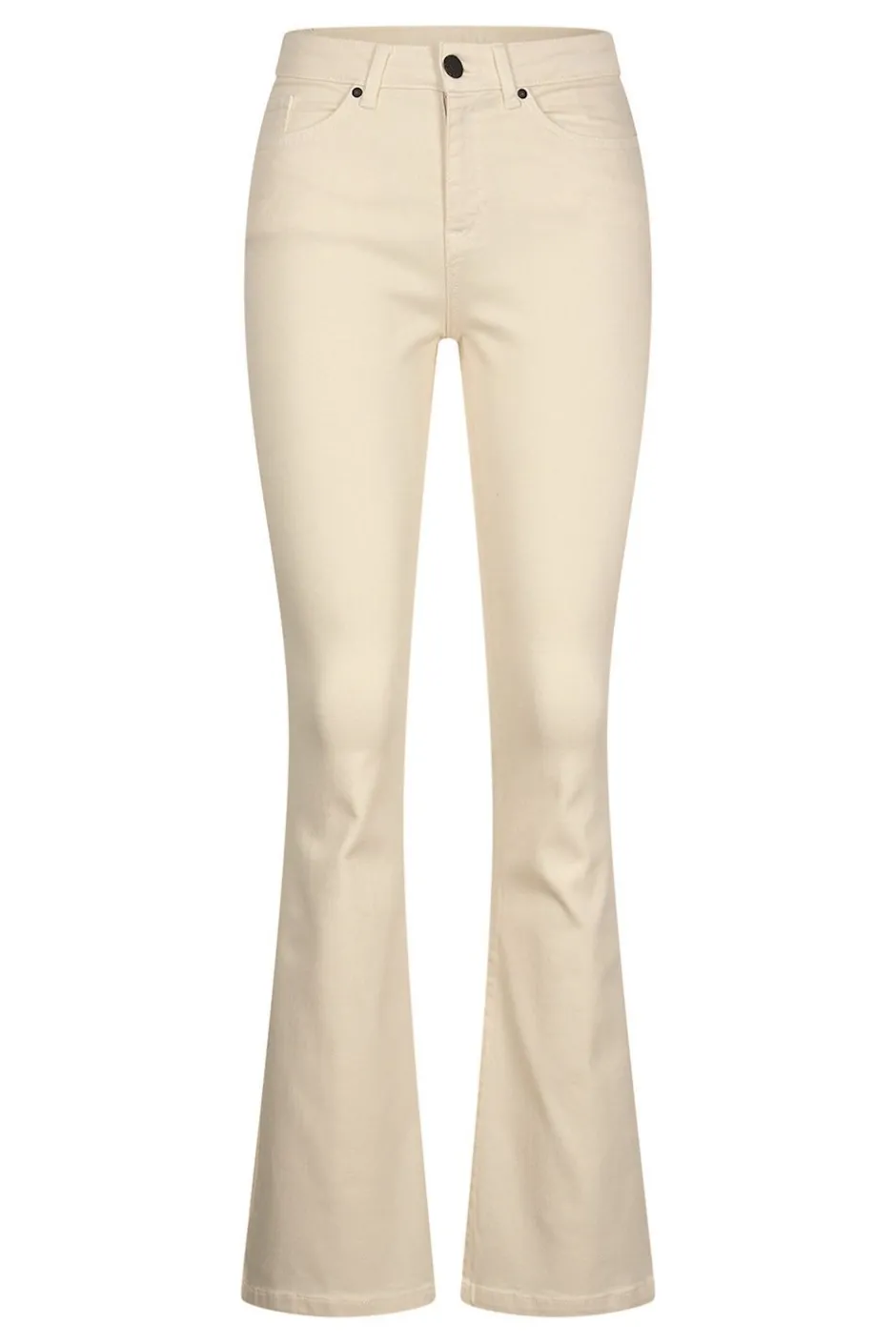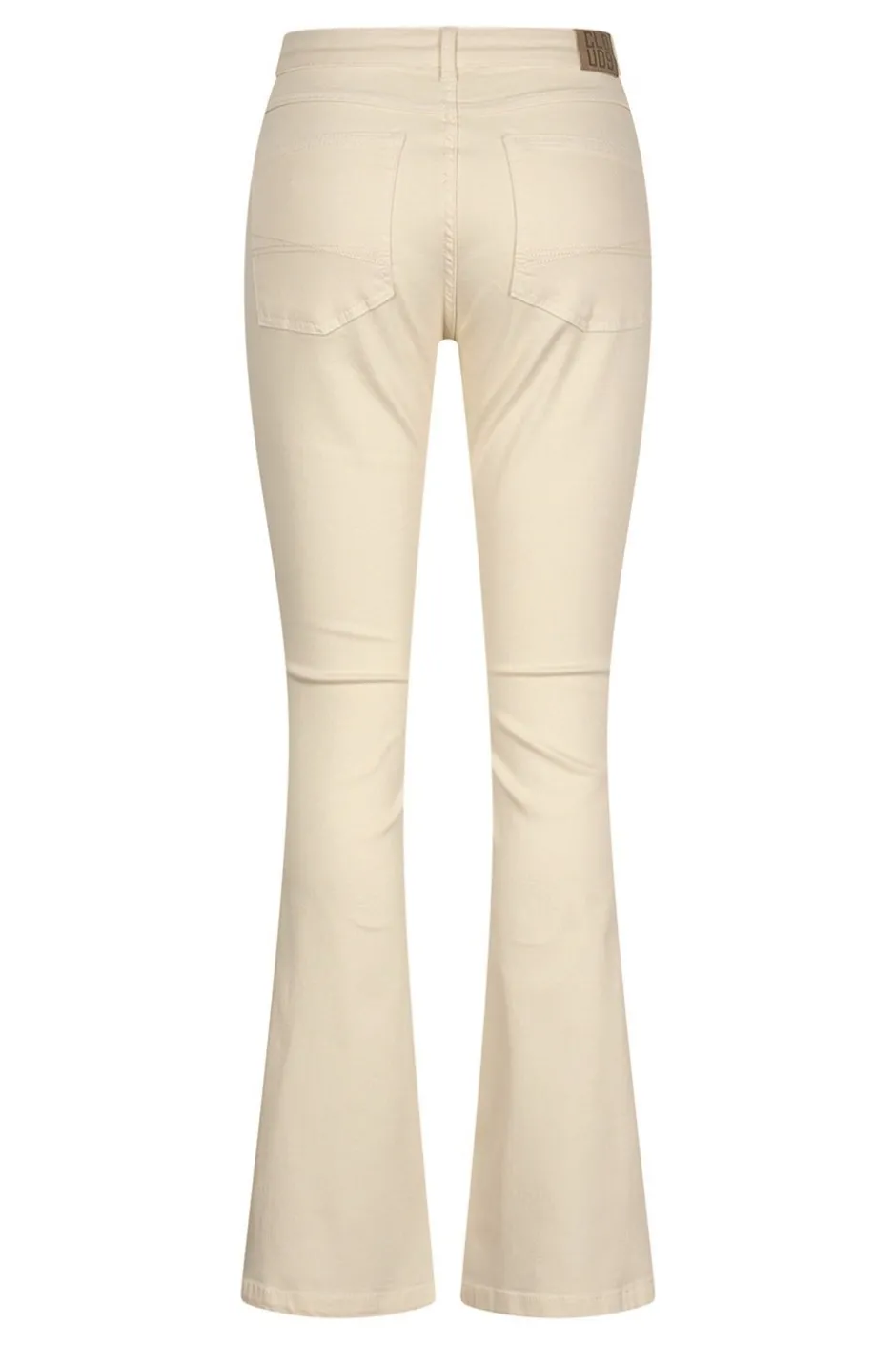 Vita byxor från Cloud9. Byxorna är gjorda av en stretchig bomullsblandning som gör att byxorna är bekväma att bära. De har utsvängda ben och en medelhög midja. Klassisk gylfknäppning och stolpfickor fram och klassiska jeansfickor bak.