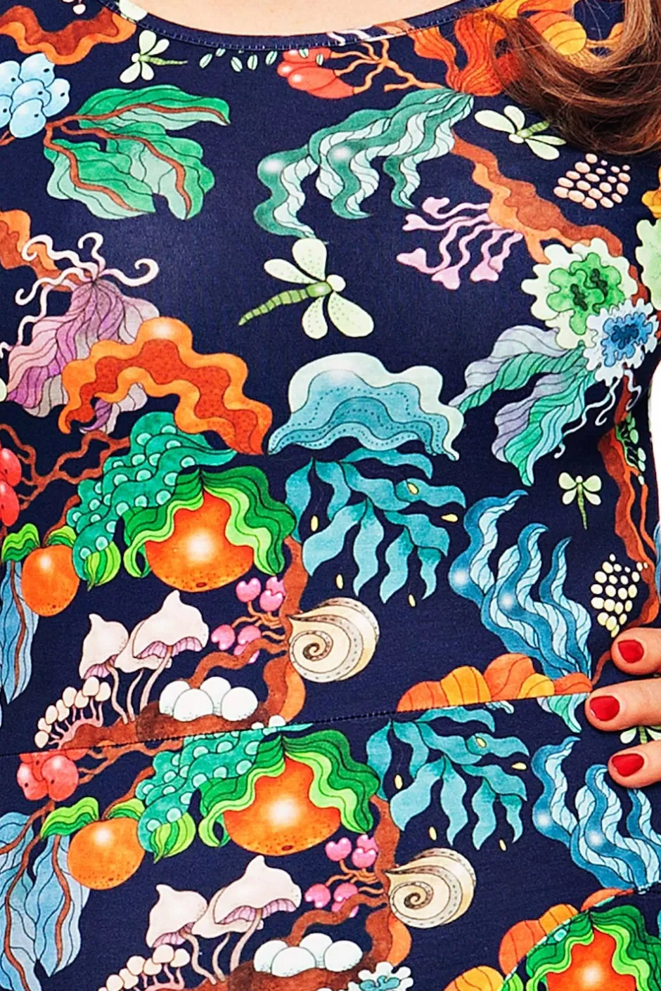 XS: Byst 82, Midja 72, Stuss 94, Längd (från axel) 94
