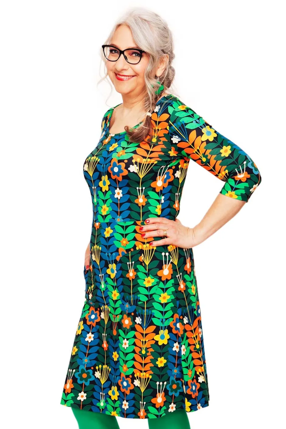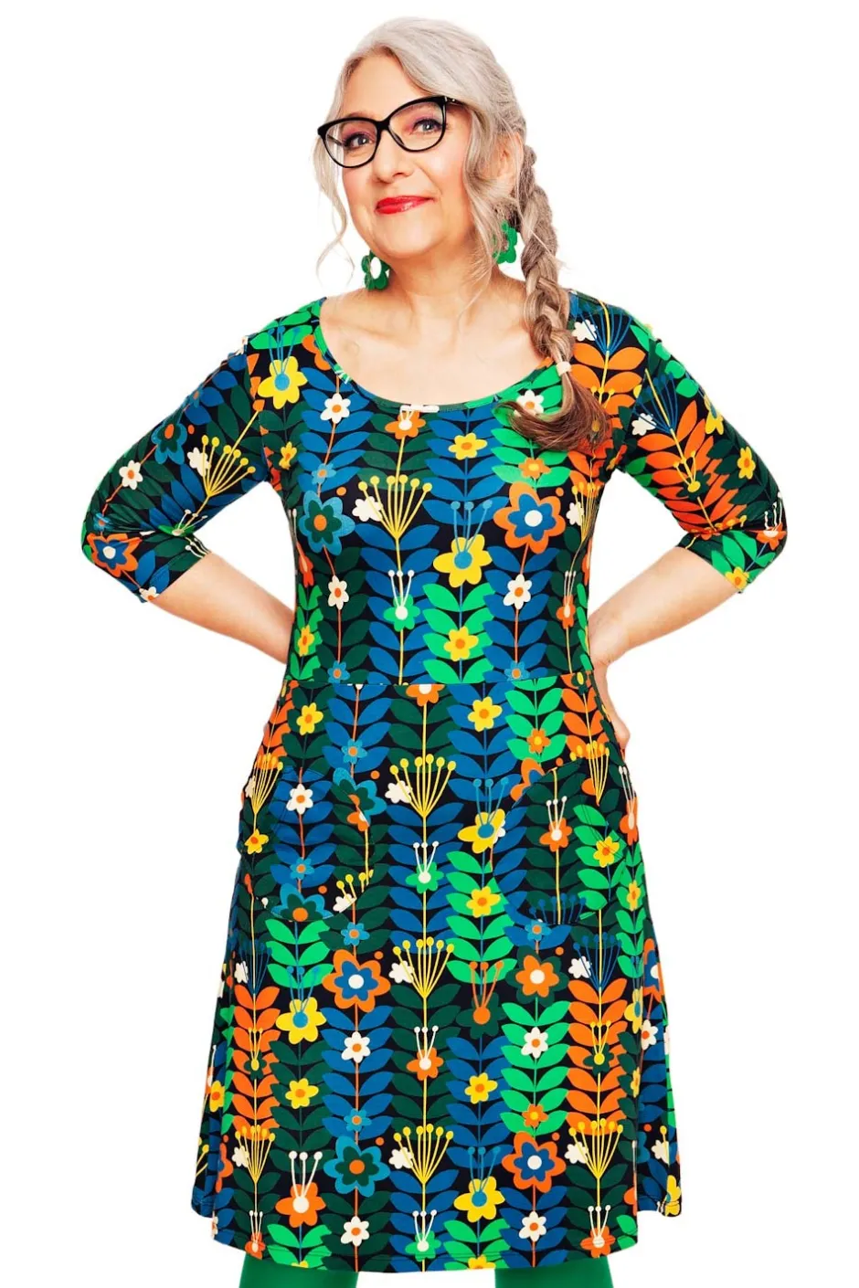 Ester är en klänning i bomullstrikå från vår egen Cissi och Selma-kollektion. En klänning med skärning i midjan och lätt utställd kjol. Klänningen har trekvartsärm och rundade fickor fram. Den perfekta vardagsklänningen!