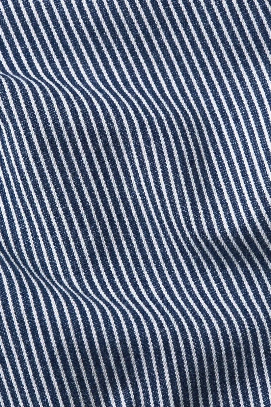 Randig hängselbyxa från holländska märket King Louie. Byxan har något utsvängda ben welt-fickor framtill och patchficka på baksidan. Knappstängning med spänne. Byxan är sydd i ett vävd denim med komfort stretch.