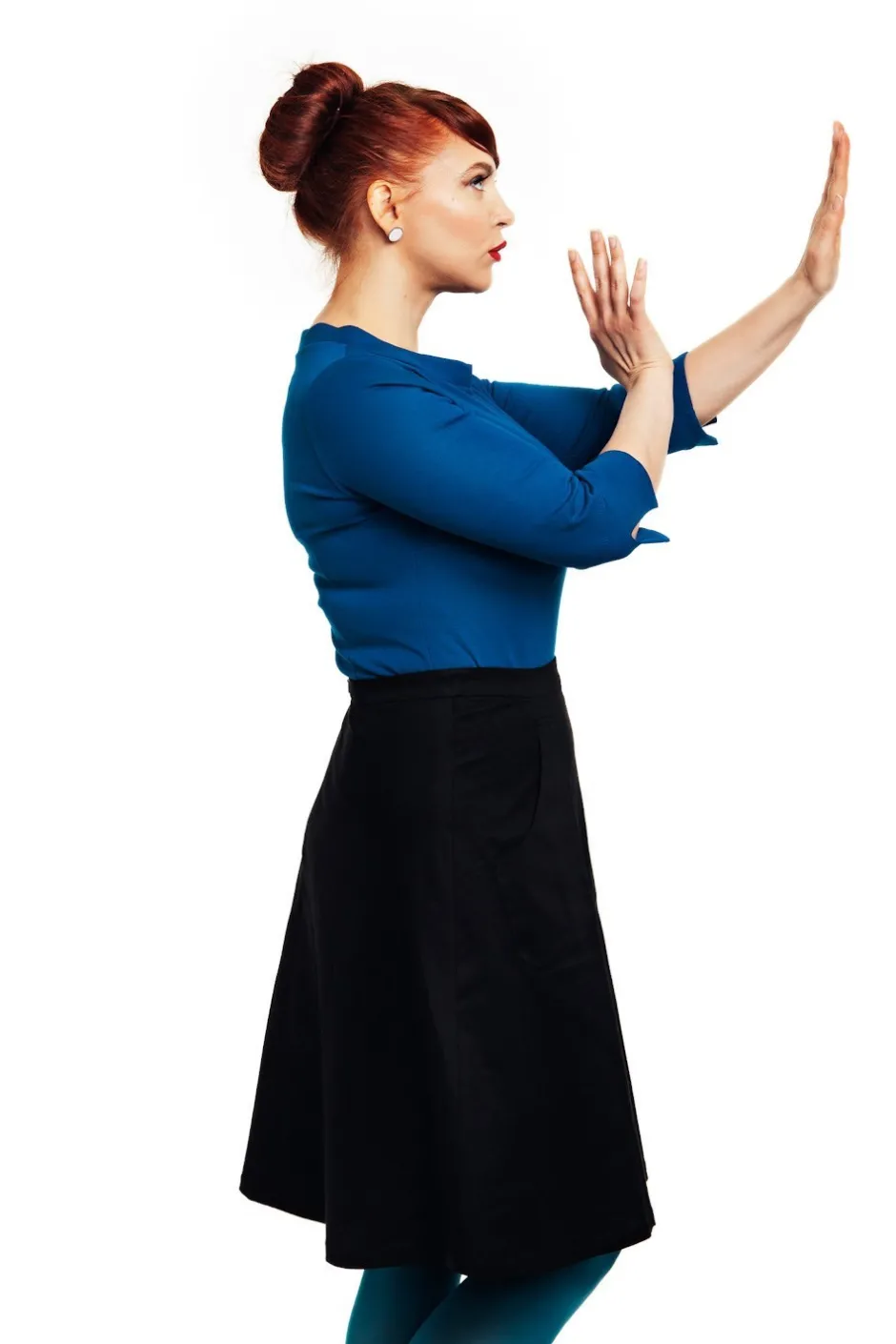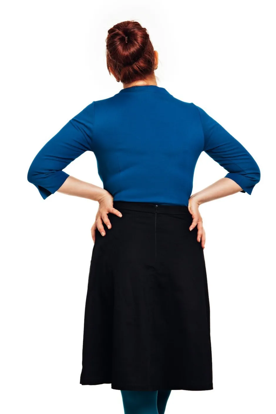 Sonja är en utställd kjol i vävd bomull från Cissi och Selma. Kjolen har stora synliga fickor fram och är fodrad så att den inte hänger upp sig på strumpbyxorna och är lätt att komma i och ur med dragkedja bak.