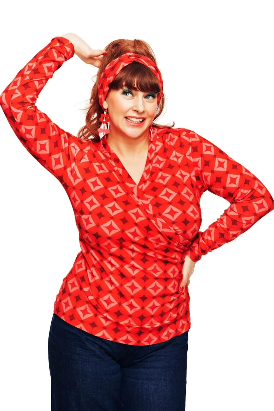 Toppen Susanne är höstversionen av vår populära topp Jessica. Toppen är gjord i mjuk och stretchig viskostrikå vilket ger ett fint fall och bra passform. Susanne har lång ärm med rynkade veck på axeln framtill. Passar bra till både kjol och byxor.