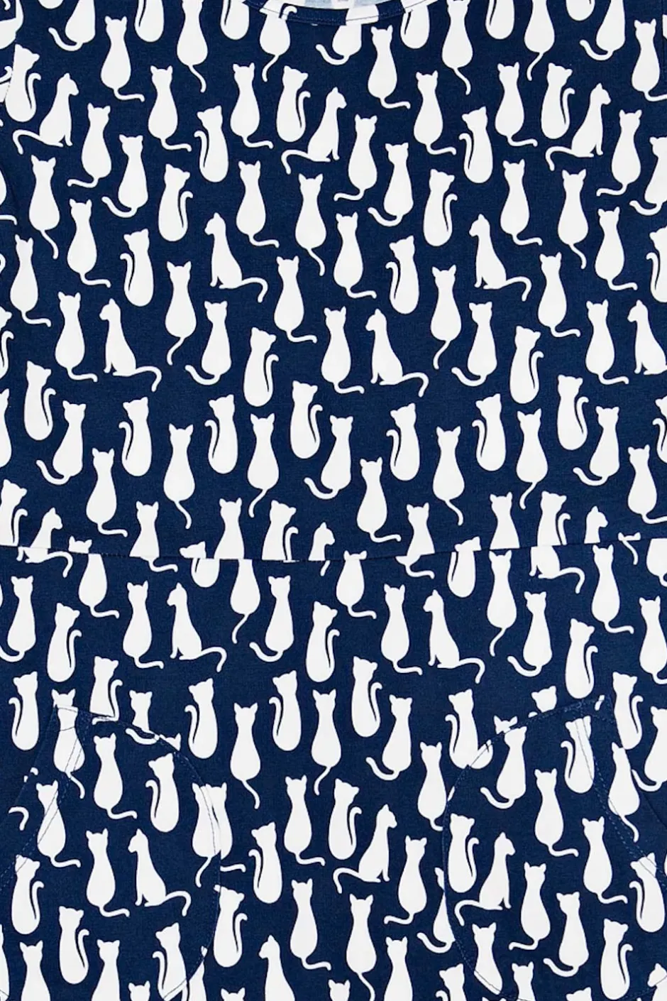 Tyget heter Katter och har en mörkblå botten med vita katter.
