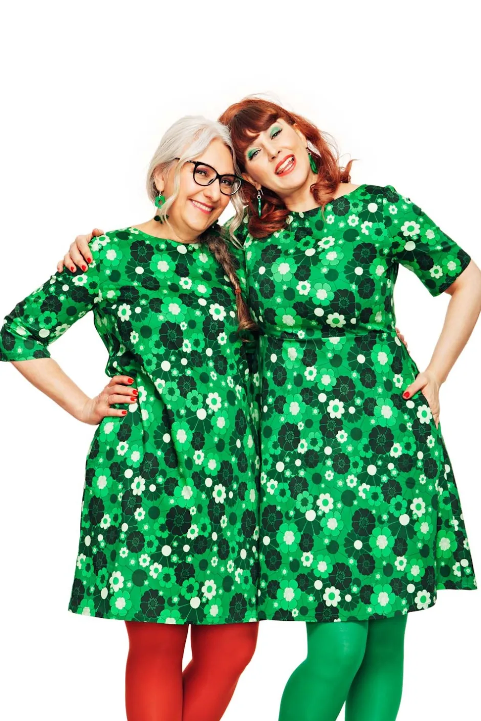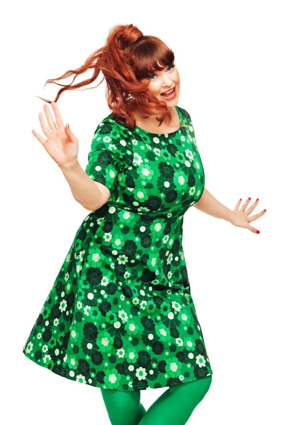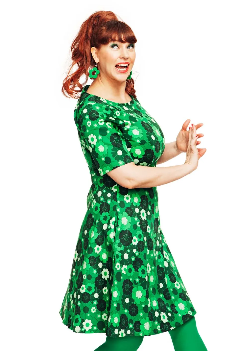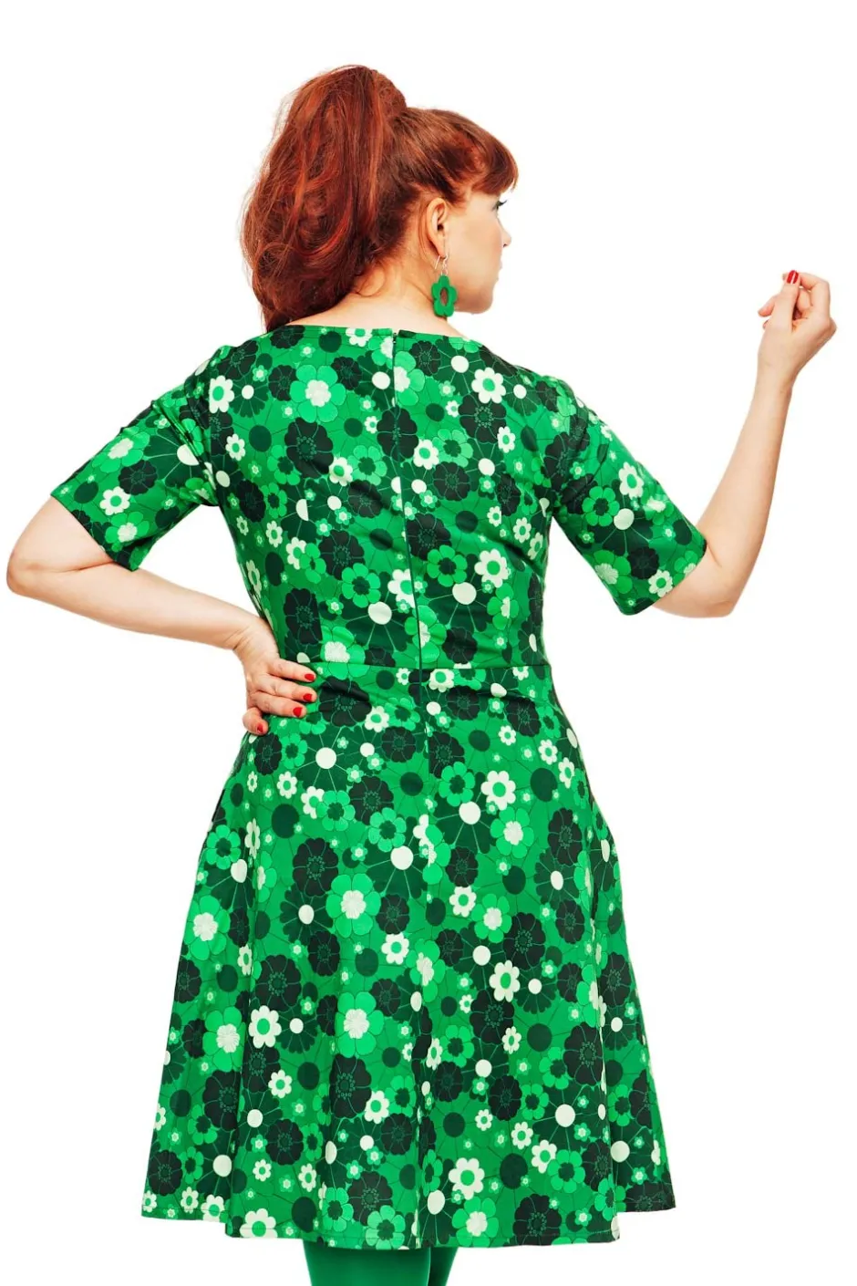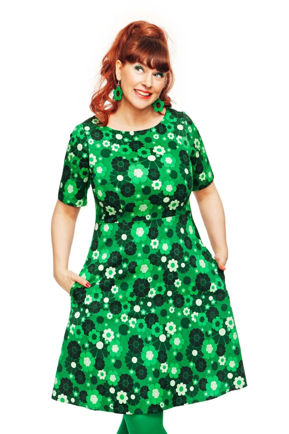 Irma är en klassisk klänningsmodell i vävd bomull med lite stretch i som är inspirerad av 50-talet. Klänningen har en båtringning, lite högre skärning i midjan och utställd kjol. Den har dolda fickor i sidan, dragkedja i ryggen och foder i kjolen. Bär den till vardags eller var snyggast på festen!