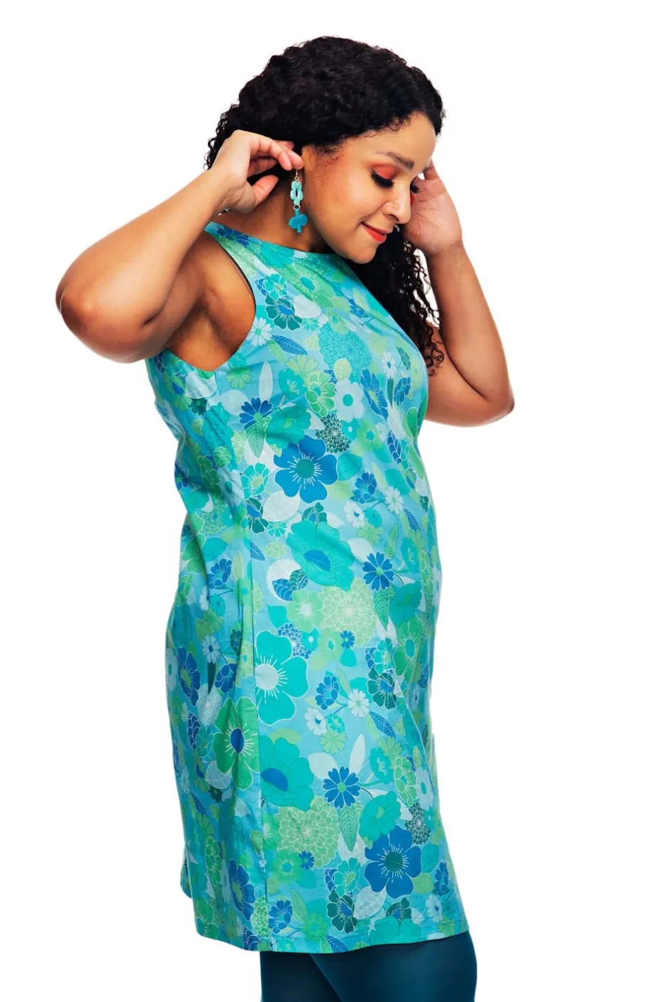 Rut är en av Cissi och Selmas första klänningsmodeller, en riktig klassiker inspirerad av 60-talet! Modellen är A-formad, nättare upptill och vidare nertill. Klänningen har ingen dragkedja utan är istället designad med sprund i nacken med knapp. De dolda fickorna i sidan har en dekorativ stickning som löper längs fickans utsida.