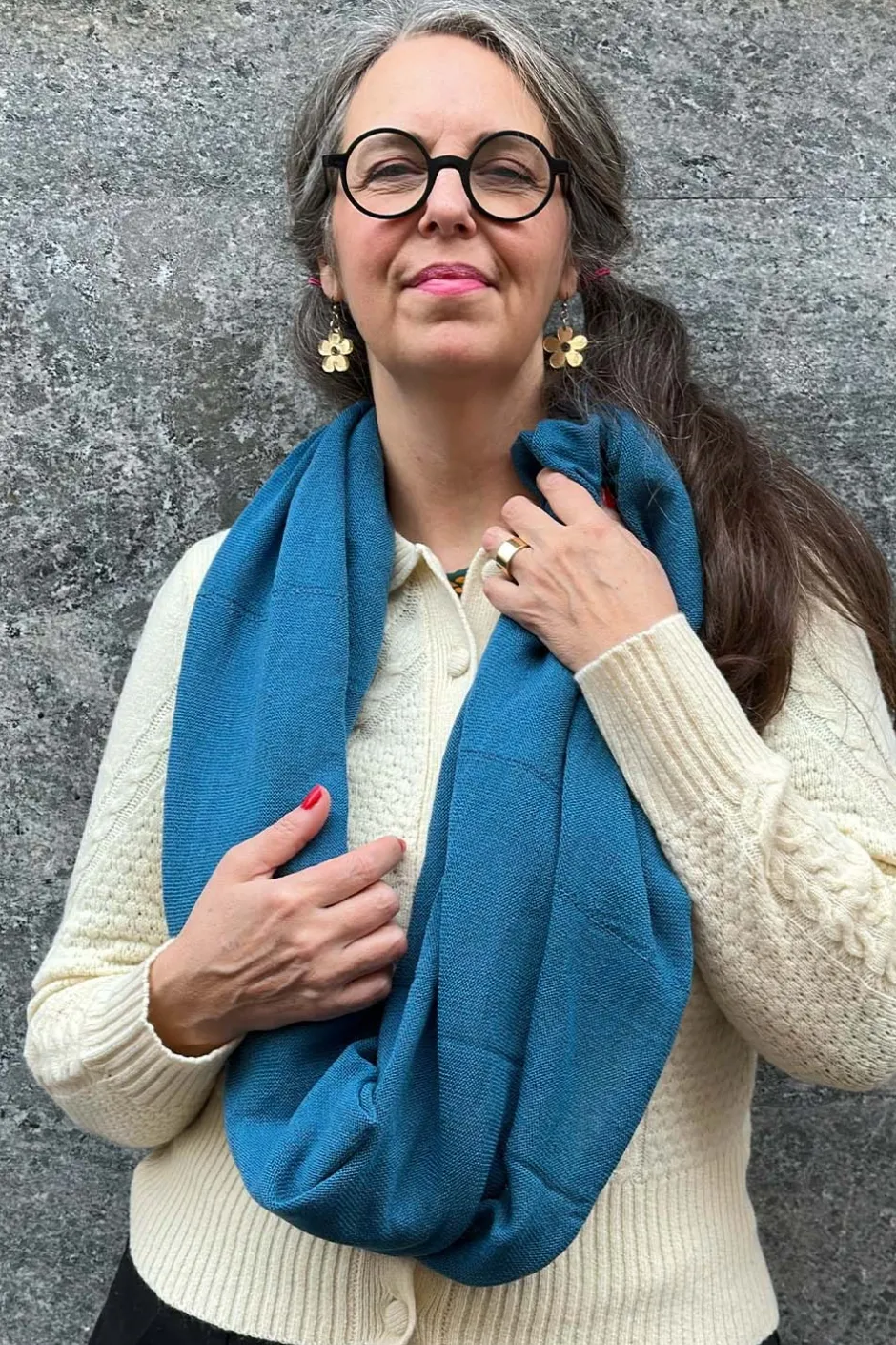 Tubsjal i ren ull från svenska märket Mariedal Design. En praktisk sjal som kan bäras på flera sätt. Med två varv bärs den som en mysig halsduk, den kan även dras över huvudet, bäras över axlarna eller som en bolero.